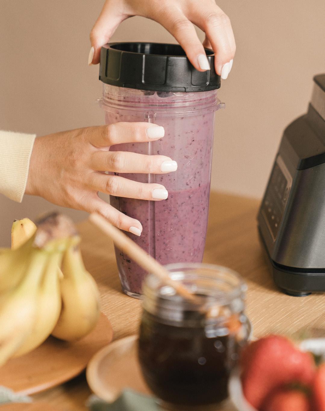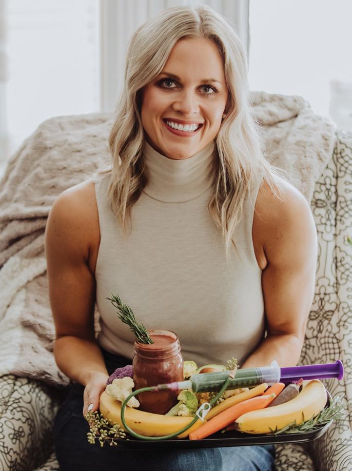 Registered dietitian Claire Kariya shares 20 tried-andtested blended meal recipes, each with their own nutritional information, in this photo-filled, downloadable ebook. Find one of her recipes on page 124.