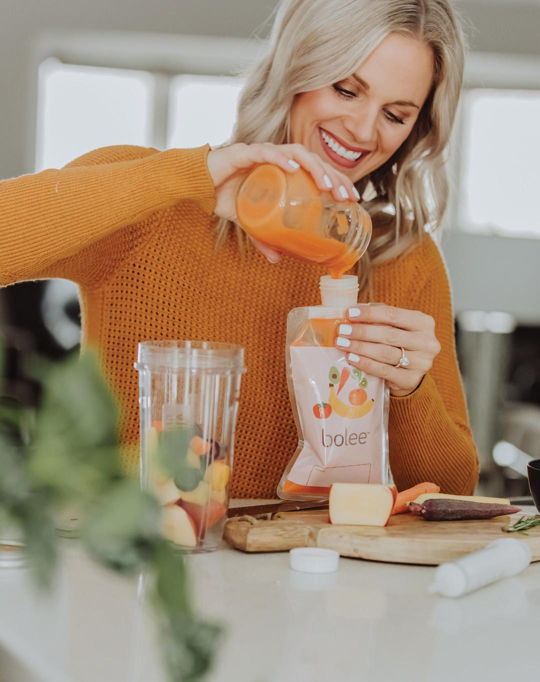 ChooMee’s pouch top is a reusable mouthpiece with a cap that attaches to all standard food pouch brands. It’s designed to protect little mouths, but the blended-feeding community has found that you can use it to draw blended food straight out of a pouch with a syringe, mess-free. choomee.com @choomee @ChoomeeInc