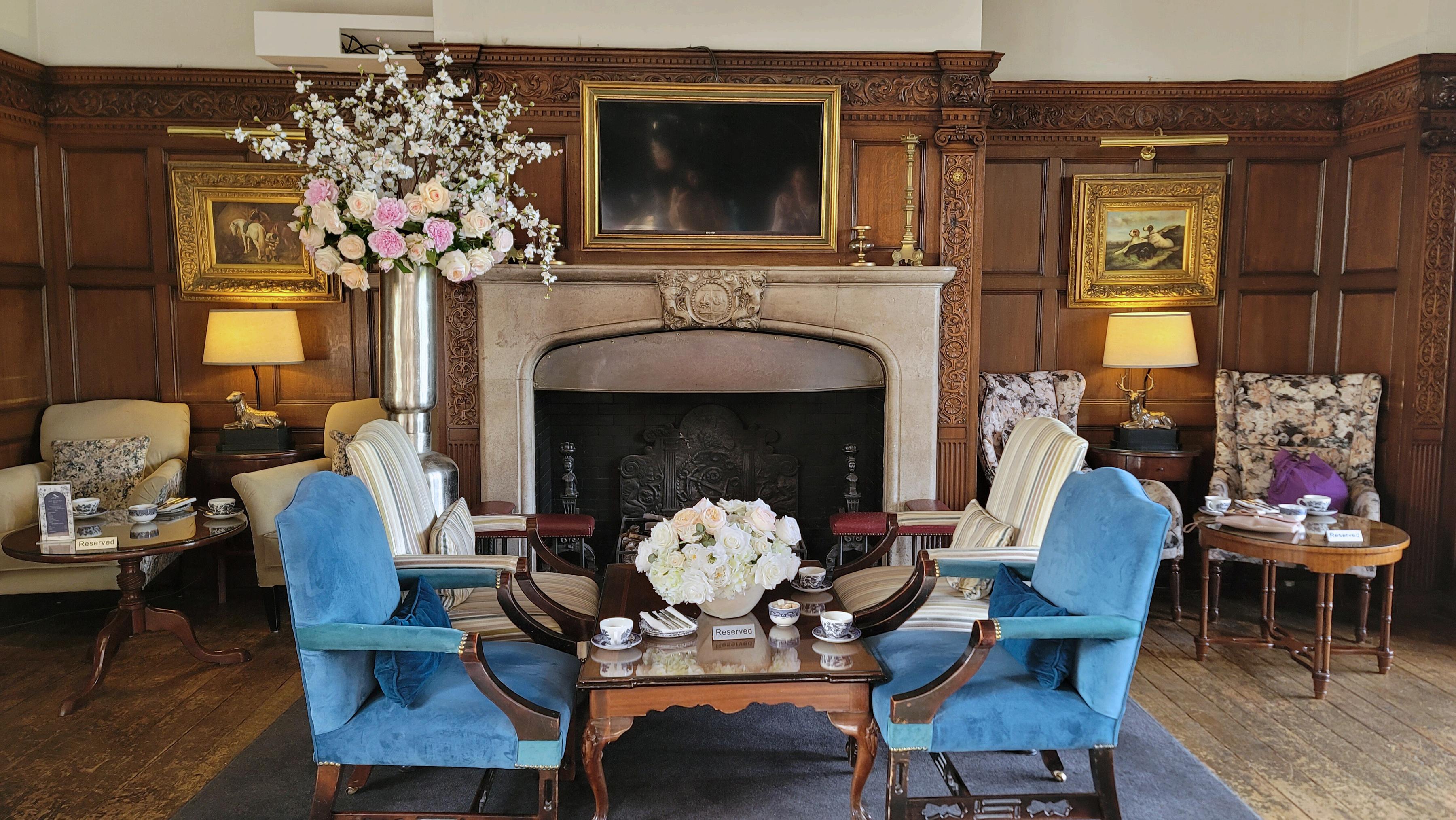 Roses and a touch of peach blossoms are the perfect touch for an afternoon tea.