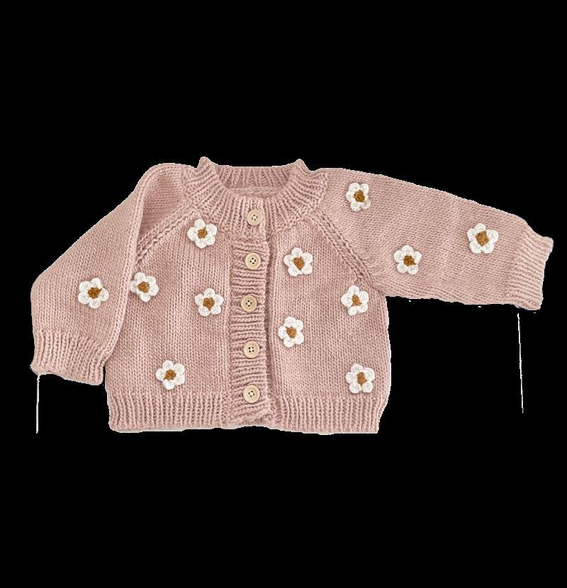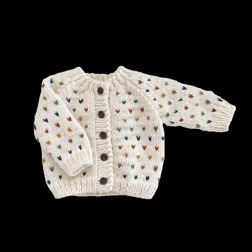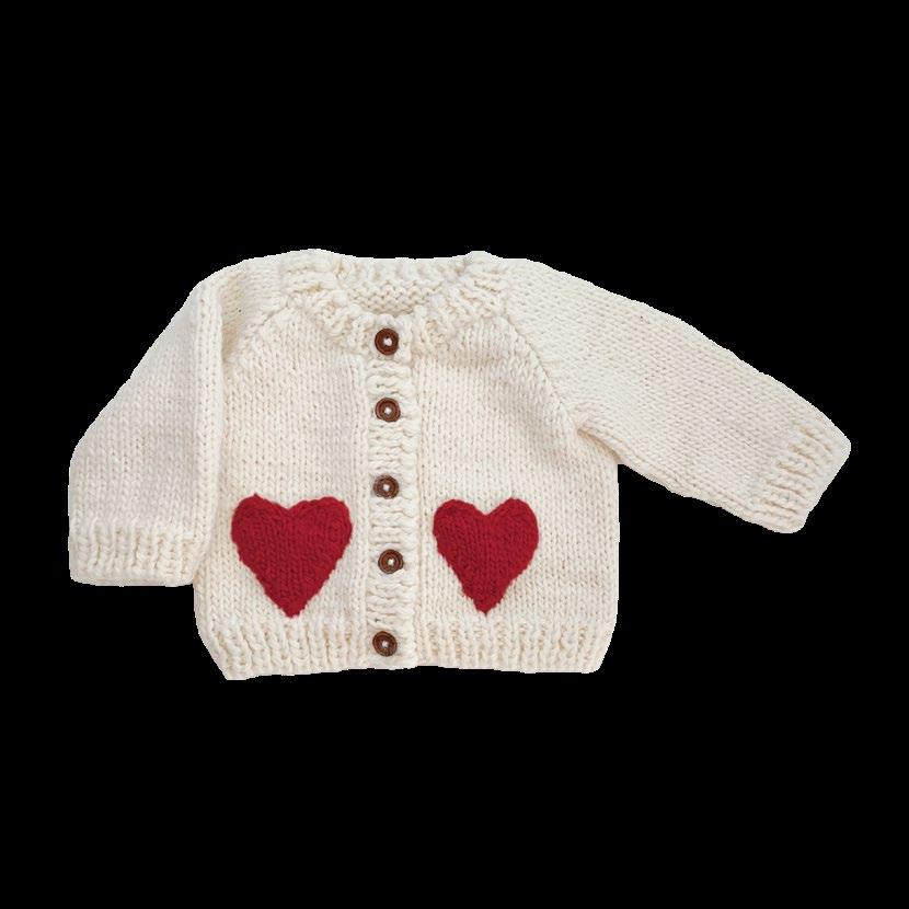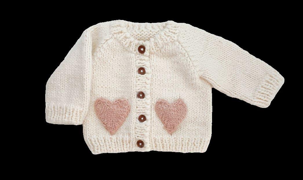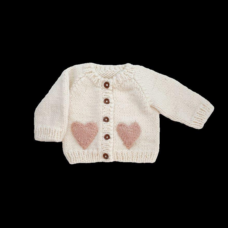 Heart Cardigan, Blush NB, XS, S, M $24.50 Heart Mittens, Blush XS, S, M $11 Heart Hat, Blush XS, S, M $14,50 Hand-knit Crown Blanket, Crown, Swan Gift Set Overalls Blanket Heart Onesie