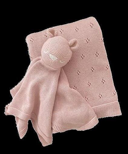 Pique Blanket + Lovey Gift Set, Bear | Blush, Cream