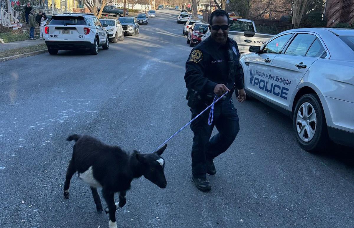 The successful return of the goats was made possible through community cooperation. Neighbors provided extra dog leashes, Chinchester-Morby quickly grabbed Edna and led her back and Officer Alexis Santiago from the UMW Police Department assisted by leashing Jeff the goat—an experience he reportedly enjoyed.
