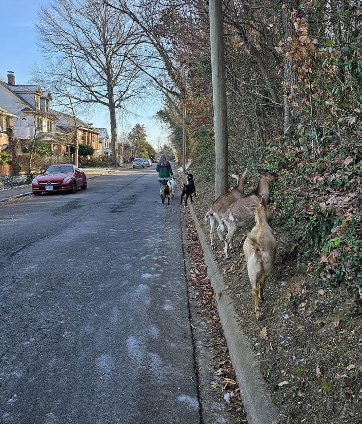 “The goats are great ambassadors, and aside from a love of rose foliage, they are harmless to the neighborhood. The response to the goats being here has been nothing but welcoming.”