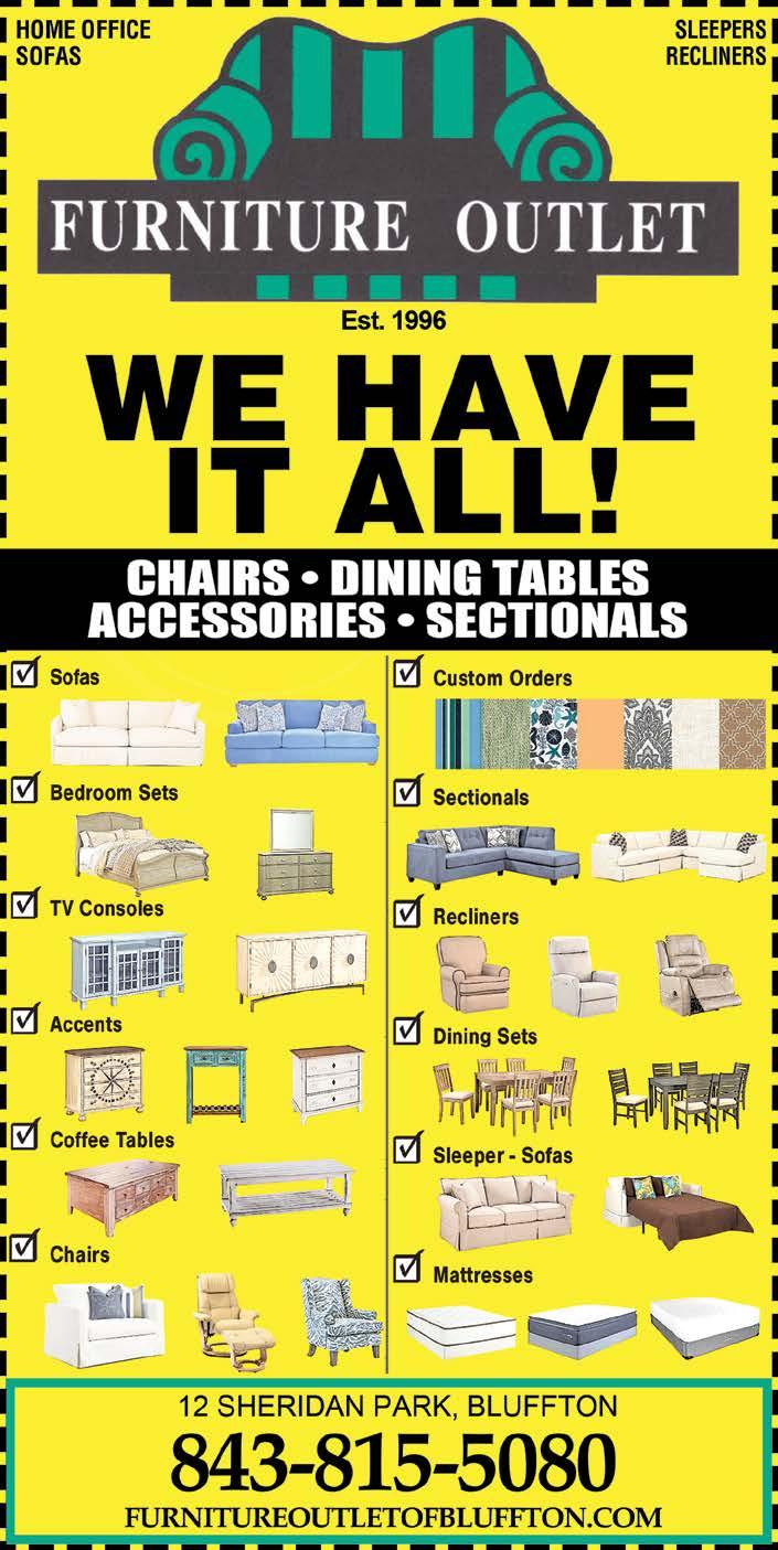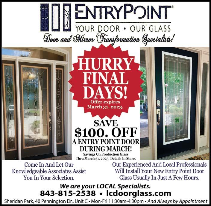 Page 8B March 14, 2023 Check Out The New Expanded FREE Parking on Dr. Mellichamp Dr.! Let’s Get Cozy by Sue Grilli Featuring works in oil, acrylic, watercolor and mixed media by Rose Coeld | Kristin Grifs | Sue Grilli Murray Sease | Lauren Arsenault Terrett Bill Winn & sculpture by Wally Palmer Adjacent to “The Store” 56 Calhoun Street lapetitegallerie.com lpg sun ad march 23.qxp_Layout 1 2/9/23 8:31 AM Page 1 Mon-Fri 11am-4pm • Sat 10am-4pm (843) 815-4669 1230 May River Road, Bluffton SC 29910 Coastalexchangebluffton@yahoo.com Something for Everyone! Furniture • Art • Lighting • Consignments