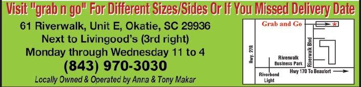 Page 10B April 4, 2023 HHI HHI A one-of-a-kind restaurant, bar & entertainment destination. 14 Folly Field Road - Hilton Head Island, SC Scan to apply or visit LuckyBeachHHI.com NOW HIRING ALL POSITIONS OPENING IN MAY You’ve Tried The Rest, Delivery and/or Pick-Up, Now Experience The Best Kept Secret! Order by Friday for Tuesday Delivery 843-812-8870 Order by 4/14 Deliver 4/18 Pot Roast & Root Vegetables Chicken Ala King Porkchop Milanese Salmon with Fennel & Sun-dried Tomato Couscous Seafood Salad with Fresh Greens & Side Basil Tomato Quiche Greek Lemon Chicken Soup Free delivery with $46 order. Order online at www.beaufortscmealdelivery.com *$24.00 meals w/sides included, large enough for 2 moderate eaters. $12.00 for QT. Soup or 1/3 Deep Dish Quiche. Always low salt/ sugar delivered cold in microwaveable/freezeable containers. Let Us Know Your Allergies or Dislikes As We Pick Appropriate Sides ALWAYS LOW SALT LOW SUGAR Order by 4/21 Deliver 4/25 Meatball Stroganoff Italian Style Turkey & Penne Walnut Encrusted Cod Eggplant Rollatini Chicken Salad with Fresh Greens & Side Sausage Quiche Minestrone Soup