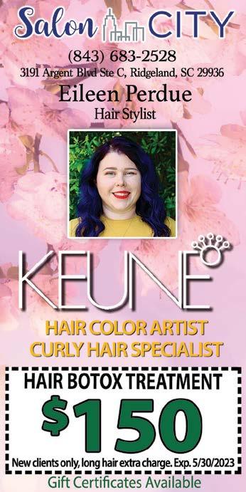 Palmetto Animal League V E T ERIN A R Y CL INIC Affordable loving care. Every pet. Every family. Offering wellness exams, vaccines and other services at affordable prices. Proceeds help us rescue homeless animals. S CHEDUL E T ODAY (843) 645-1727 56 Riverwalk Blvd. Okatie, SC 29936 | PalmettoAnimalLeague.org Stop in and try our birthday blend! BLUFFTON + HISTORIC PORT ROYAL + HILTON HEAD ISLAND + CORNERPERK.COM May 2, 2023 The Bluffton Sun Page 3A SUNNY SIDE UP