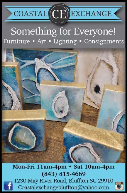 July 5, 2023 • Dine! • Shop! • Fun! • Art! • Gifts! And More! Lauren Arsenault Terrett | Bill Winn & sculpture by Wally Palmer Adjacent to “The Store” 56 Calhoun Street lapetitegallerie.com Mon. – Fri 10-5, Sat. 10-4 6 Bruin Rd, Bluffton, SC 29910 • (843) 707-9083 Úmaggieandmeoldtownbluffton Mothers •Grandmothers •Daughters 6 CHURCH STREET OLD TOWN BLUFFTON SOBAGALLERY COM THE SOCIETY OF BLUFFTON ARTISTS PRESENTS 5 - 7 p m , J u l y 6 J u l y 3 - 3 0 E X H I B I T R E C E P T I O N From My Imagination to Yours F E A T U R E D A R T IS T V i r g i n i a C a s s i d y