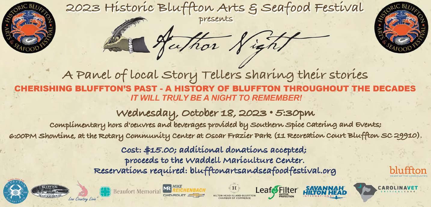 Located at 21 Sawmill Creek Road, Bluffton. Reservations required. $45/per person. Proceeds to Waddell Mariculture Center. To make your reservation: blufftonartsandseafoodfestival.org
