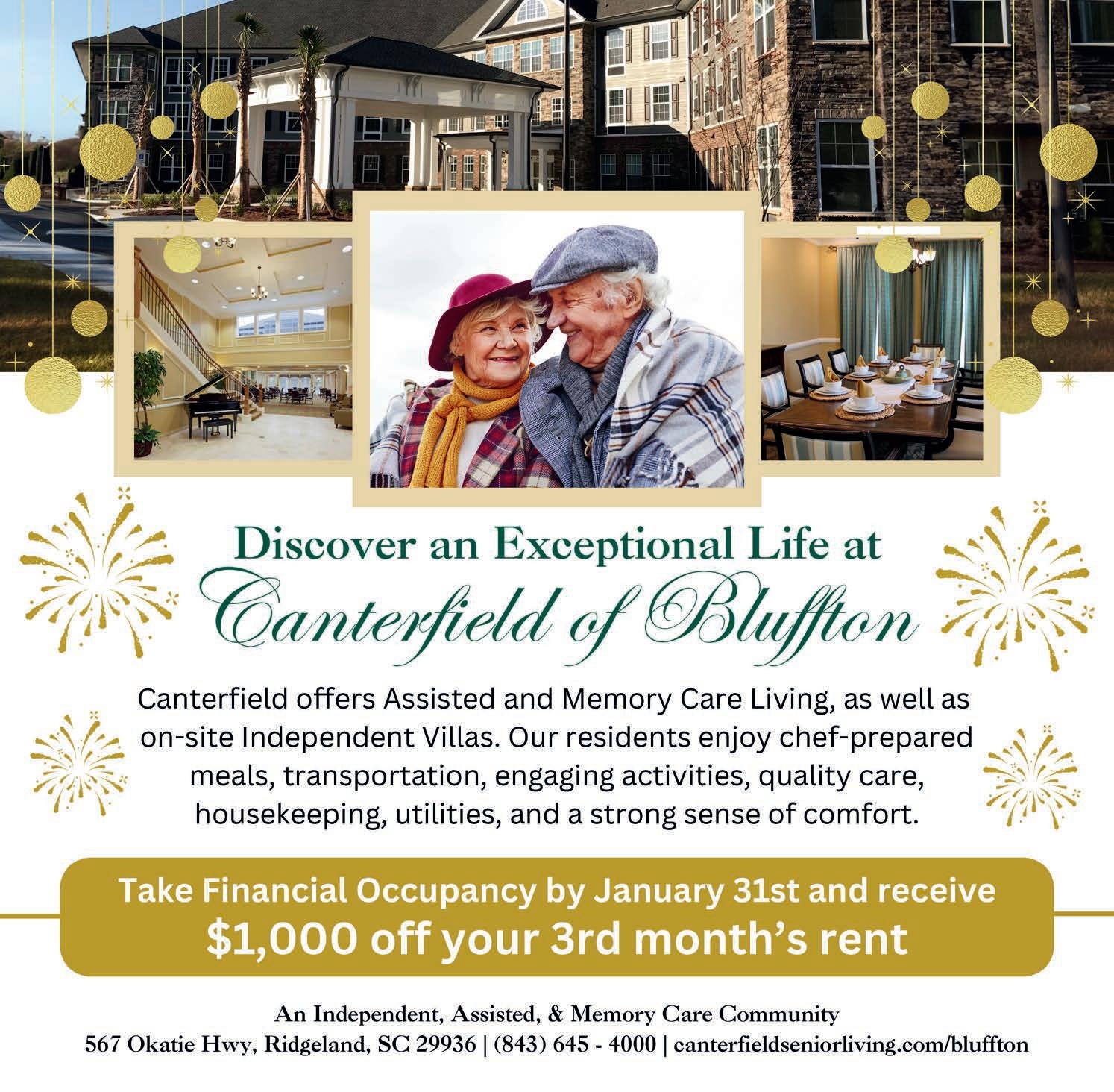 THE BLUFFTON SUN Issue 1, January 7, 2025, is published twice monthly by Beaufort Media Group, LLC, 181 Bluffton Rd Suite F103-2 Bluffton, SC 29910. Periodicals Postage paid at Bluffton, SC and at additional mailing offices. POSTMASTER: Send address changes to THE BLUFFTON SUN, PO Box 2056, Bluffton, SC 29910-2056.