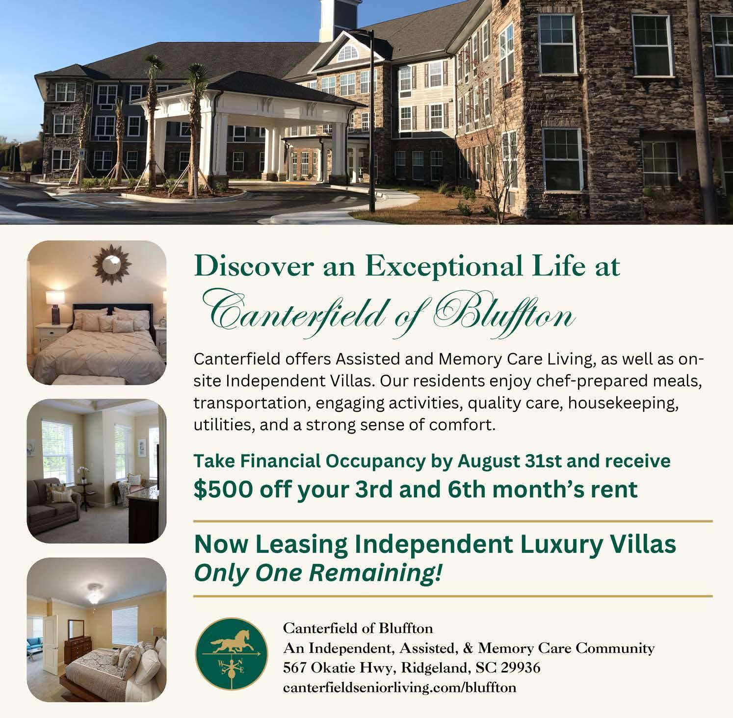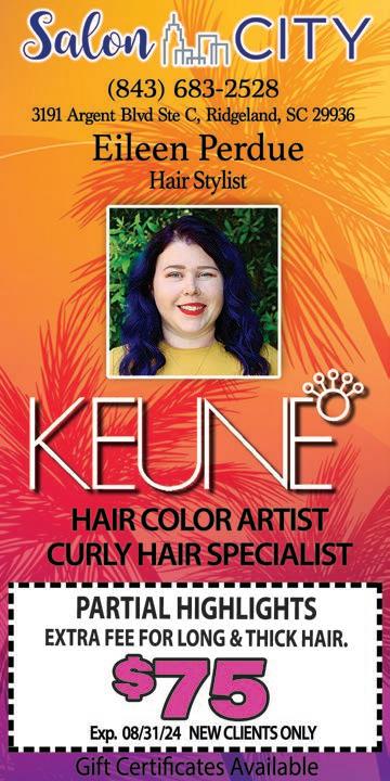 THE BLUFFTON SUN Issue 15, August 6, 2024, is published twice monthly by Beaufort Media Group, LLC, 181 Bluffton Rd Suite F103-2 Bluffton, SC 29910. Periodicals Postage paid at Bluffton, SC and at additional mailing offices. POSTMASTER: Send address changes to THE BLUFFTON SUN, PO Box 2056, Bluffton, SC 29910-2056.