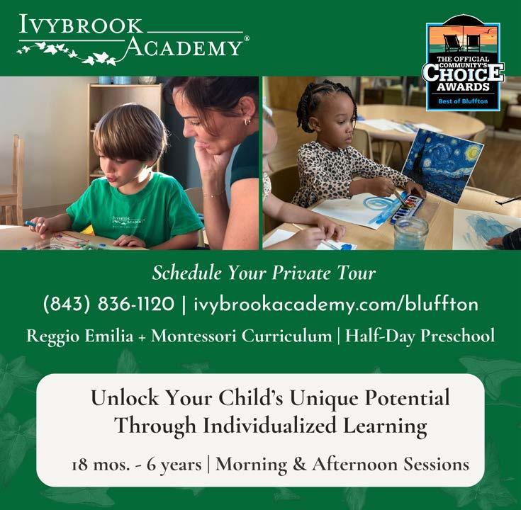 THE BLUFFTON SUN Issue 23, Novmber 18, 2025, is published twice monthly by Beaufort Media Group, LLC, 181 Bluffton Rd Suite F103-2 Bluffton, SC 29910. Periodicals Postage paid at Bluffton, SC and at additional mailing offices. POSTMASTER: Send address changes to THE BLUFFTON SUN, PO Box 2056, Bluffton, SC 29910-2056.