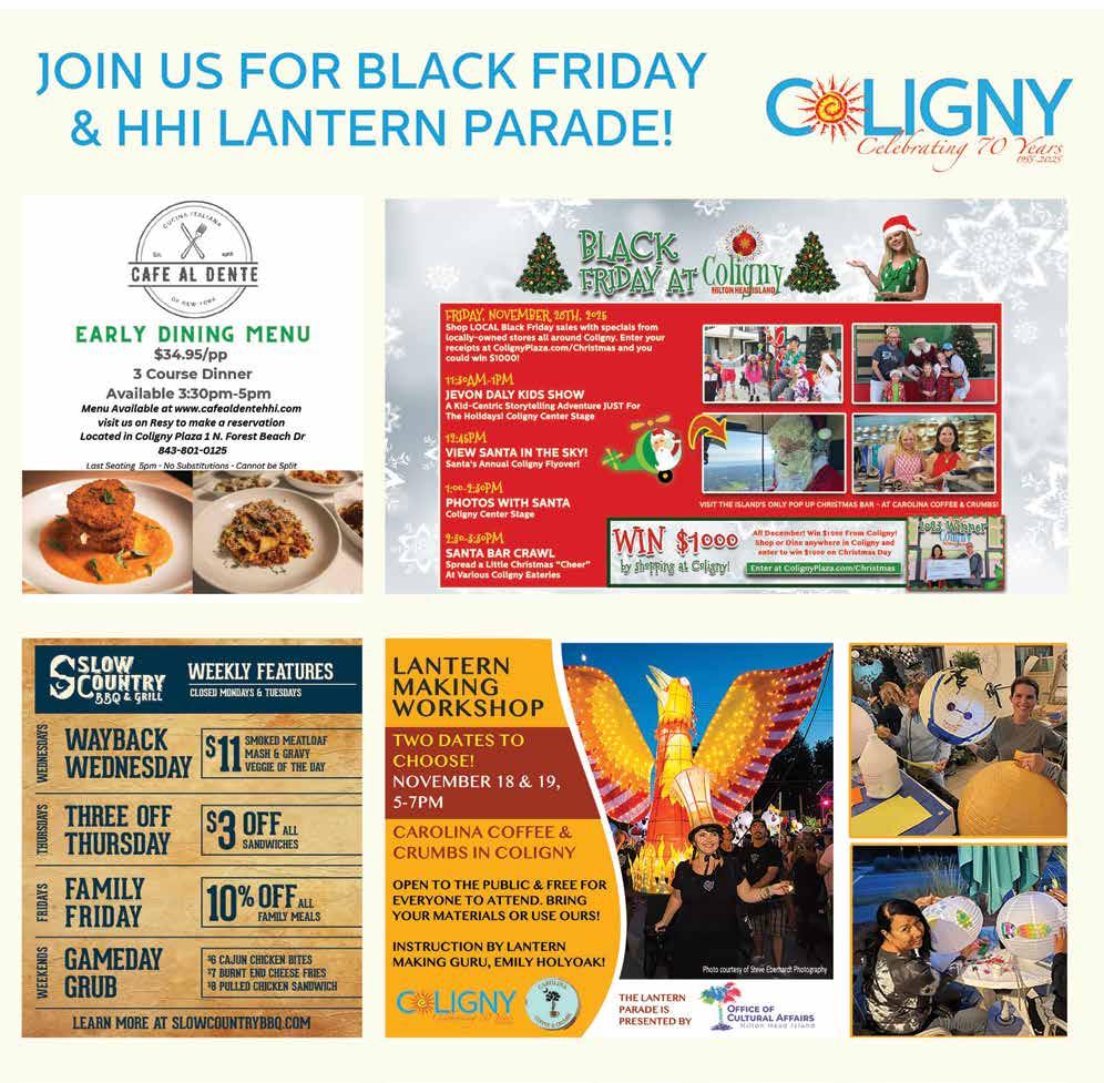 The Holiday Kick-Off Festival is presented by the Town of Hilton Head Island and the Arts Center of Coastal Carolina. Admission is free, and parking will be available on-site. For more information, visit www.artshhi.com or www.hiltonheadislandsc.gov