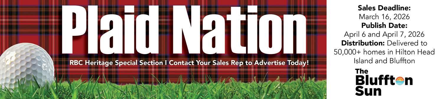 THE BLUFFTON SUN Issue 4, February 17, 2026, is published twice monthly by Beaufort Media Group, LLC, 181 Bluffton Rd Suite F103-2 Bluffton, SC 29910. Periodicals Postage paid at Bluffton, SC and at additional mailing offices.