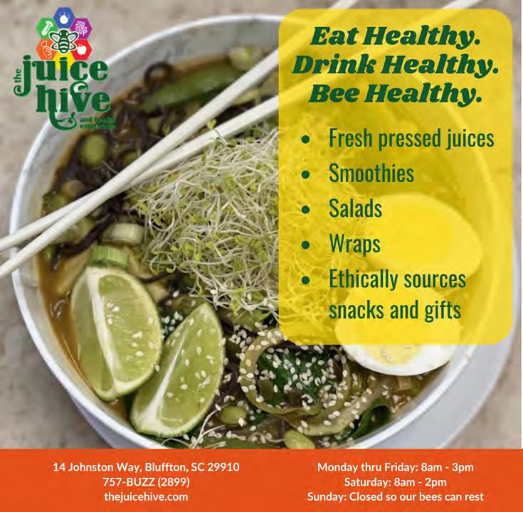 THE BLUFFTON SUN Issue 13, July 1, 2025, is published twice monthly by Beaufort Media Group, LLC, 181 Bluffton Rd Suite F103-2 Bluffton, SC 29910. Periodicals Postage paid at Bluffton, SC and at additional mailing offices. POSTMASTER: Send address changes to THE BLUFFTON SUN, PO Box 2056, Bluffton, SC 29910-2056.