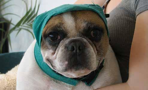 I dropped off a hot-mess Frenchie and a few hours later picked up an angry Polish Babushka, furious that I insulted her borscht. Pete the Dog now sported a green wrap with wires flattening down his ear so it wouldn’t re-inflate. He strutted out like he’d just been through a makeover on a budget reality show.