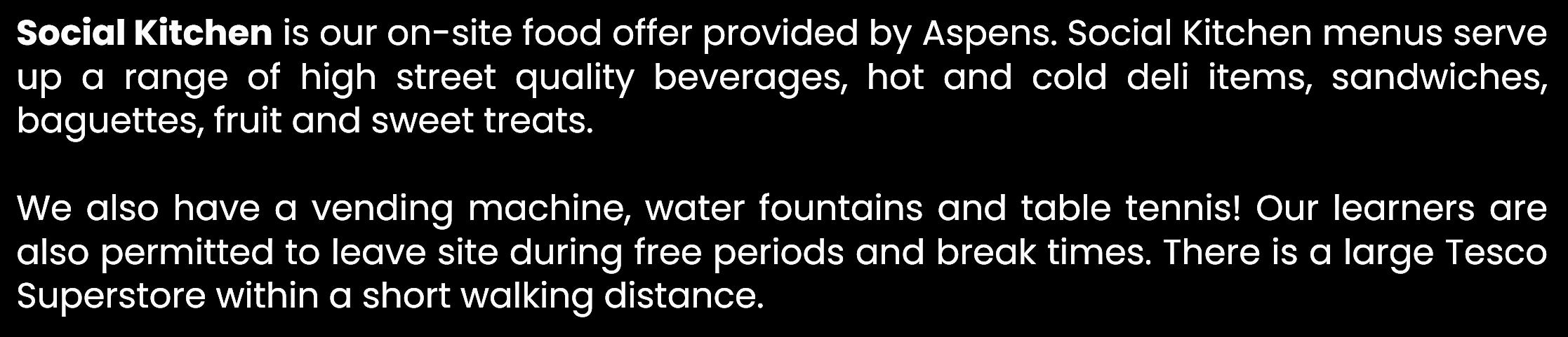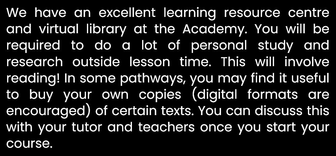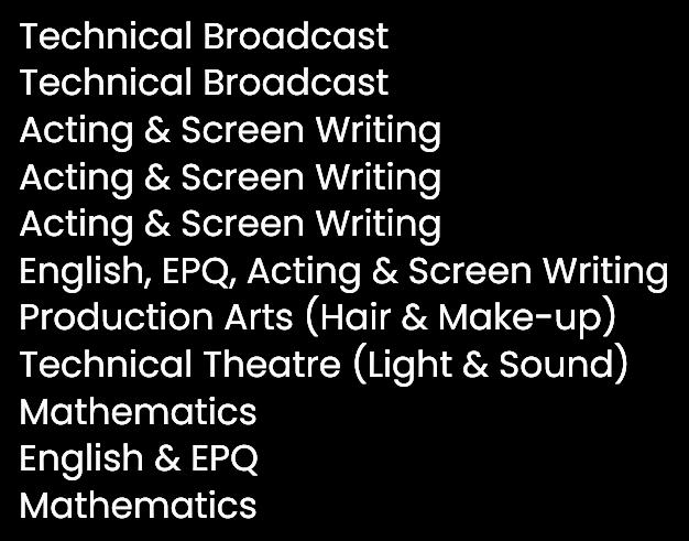Specialising in stage and screen production, we provide a dynamic and personalised learning pathway for you. We aim to maximise your life chances by providing a stimulating, challenging, respectful and safe environment where you feel listened to, respondedtoandvalued.