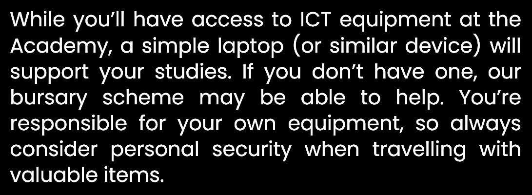 Academy learners have access to cutting-edge technology, which plays a key role in yourstudies.You'lloftenbeonlineresearching,networking,orcompletingassignments -sostayingsafeisessential.