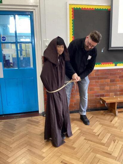 This week, Year 4 were delighted to welcome Reverend Cris from All Hallows Church, who visited as part of their RE topic on influences Reverend Cris brought the story of St Francis of Assisi to life in an engaging and memorable way. One lucky pupil even got to dress up as St Francis, helping everyone visualise the saint’s remarkable life.