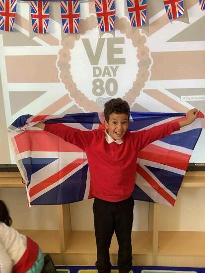 Last Friday as a school we celebrated ‘VE day’ which marked the 80th anniversary of the allied forces victory in Europe during the Second World War The day was enjoyed by all as the children and staff dressed in red, white and blue to repre- sent the Union Jack Parties, games and plenty of singing marked the day as a complete success