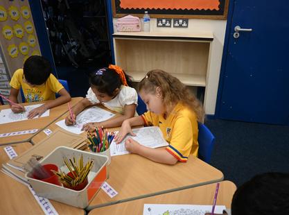 In Maths, the children learned all about AB patterns (for example, red–blue–red–blue). Recognising, predicting, and creating patterns is an important early mathematical skill that helps children notice relationships and connections in numbers and shapes. We explored patterns found in colours, shapes, sounds, movements, and everyday objects. The children practised spotting, extending, and correcting patterns in different arrangements, such as lines, circles, and zigzags. At home, many children continued this learning by noticing patterns around them stripes on clothes, tiles in the kitchen, or petals on flowers and creating their own patterns with toys, blocks, or snacks.