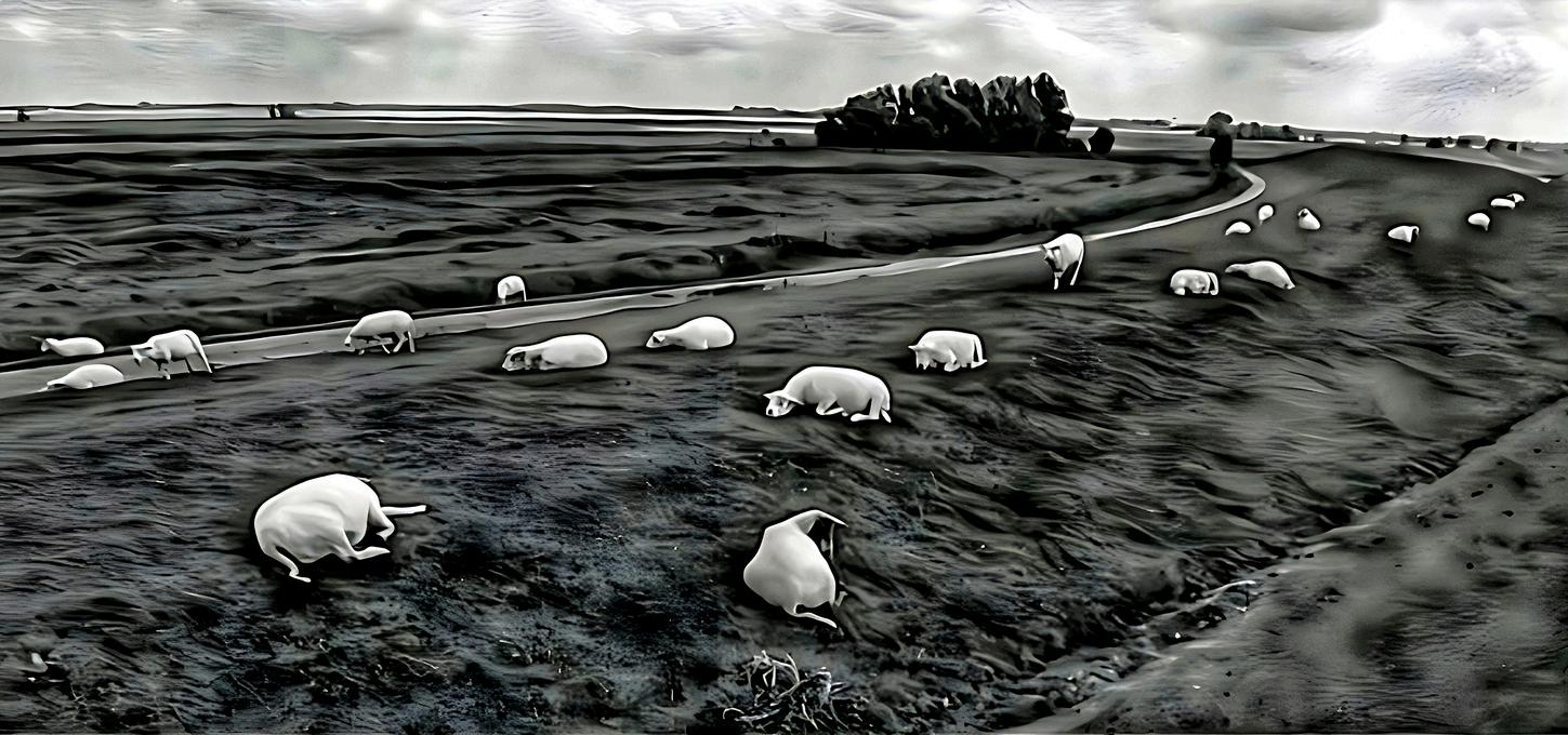 Wemettheshornsheepsonabike tripnearKrautsand/Germany; Insta360one2X;