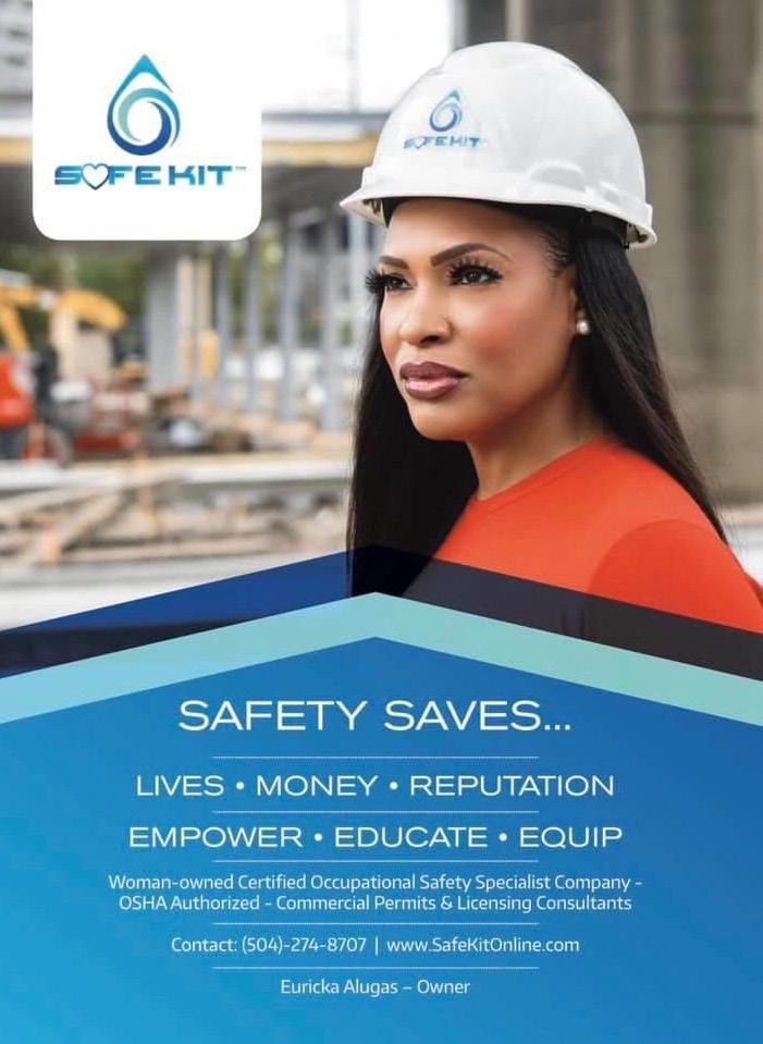 Euricka Alugas’ dedication to service has always been the driving force behind her vision. Her humble beginnings in New Orleans combined with her urge to assist others especially the youth motivates her to use her gifts in innovative ways as a local businesswoman. Safe Kit, safety staffing and training companies, which is Alugas’ sole creation, has filled a void by supporting the city of New Orleans rapidly growing infrastructure. While it is atypical for an industrial and construction safety company to be 100% woman-owned and operated, Alugas is determined to forge a new path in this maledominated industry. In her collaborative