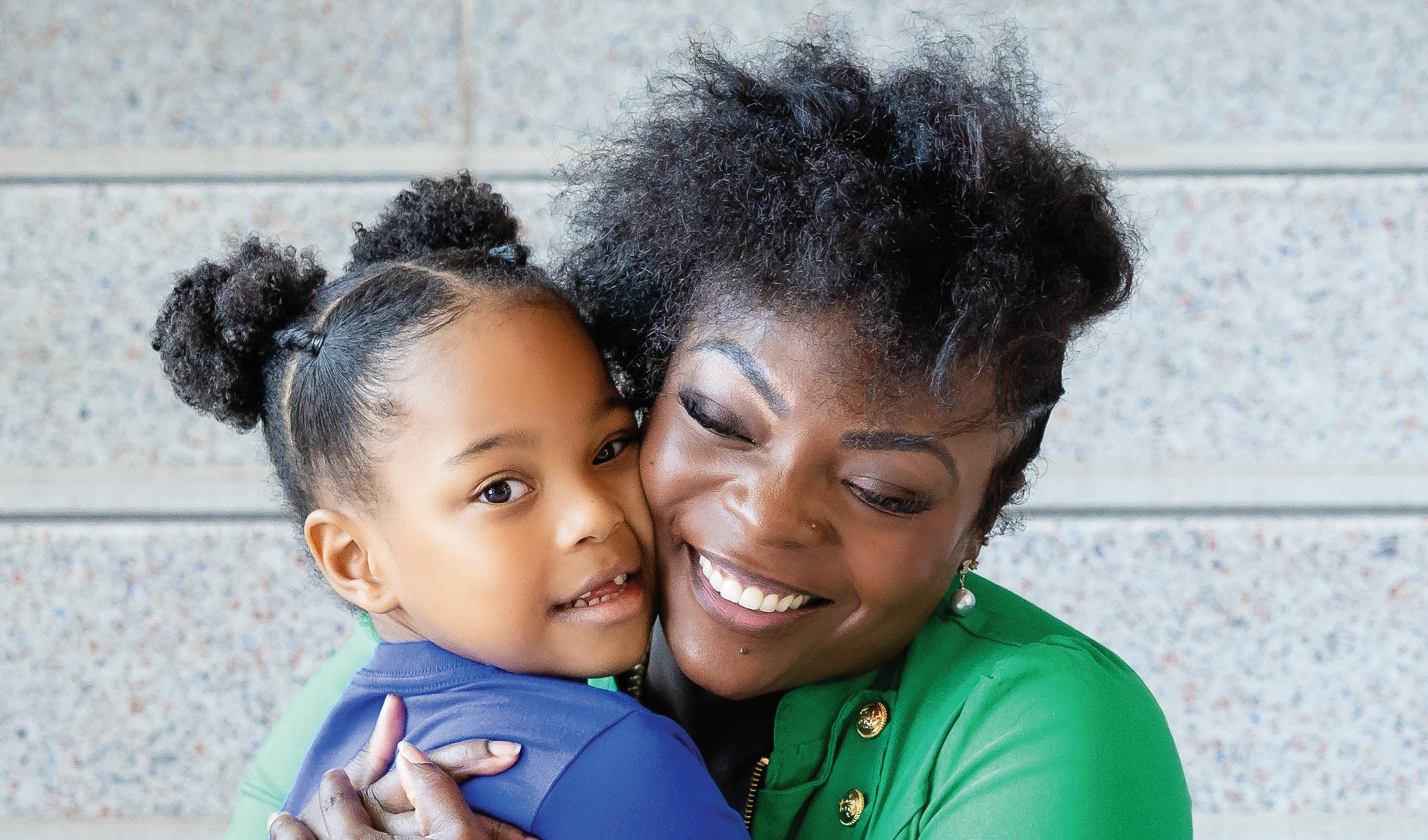 work, she attributes her strength to her spiritual upbringing. “I had a praying mother,” she says, “and I am now that praying mother, very grateful for that foundation.”