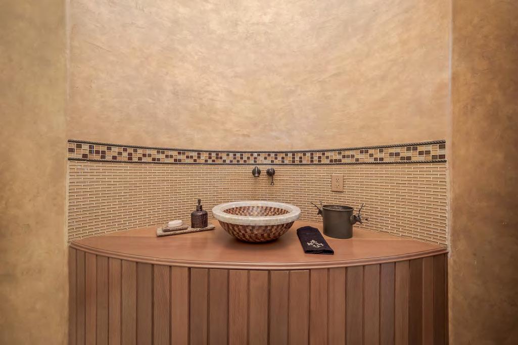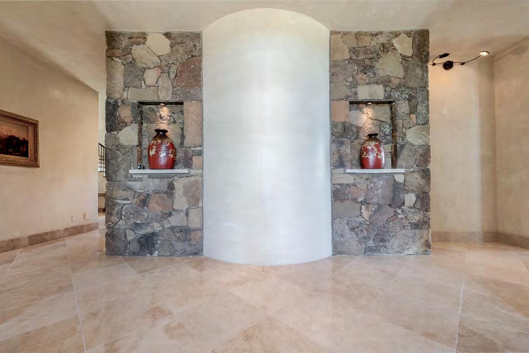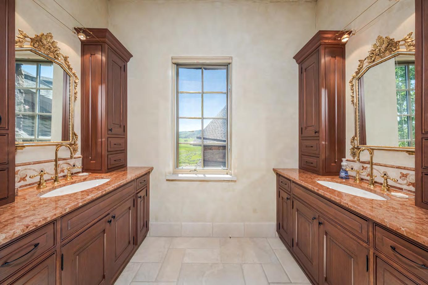 Thereis amain level primary suiteand a second primary suite both featuring fireplaces,steam showers,soaking tubs,and individual climatecontrol.Each of the additional bedrooms are all privatesuites.Designed with durability and sustainability in mind,thehome is constructed from energy-efficient e-crete blocks with over 110,000 lbs.of stoneused in theconstruction.