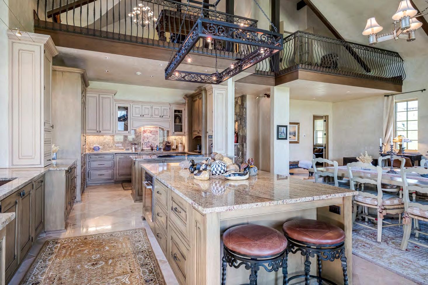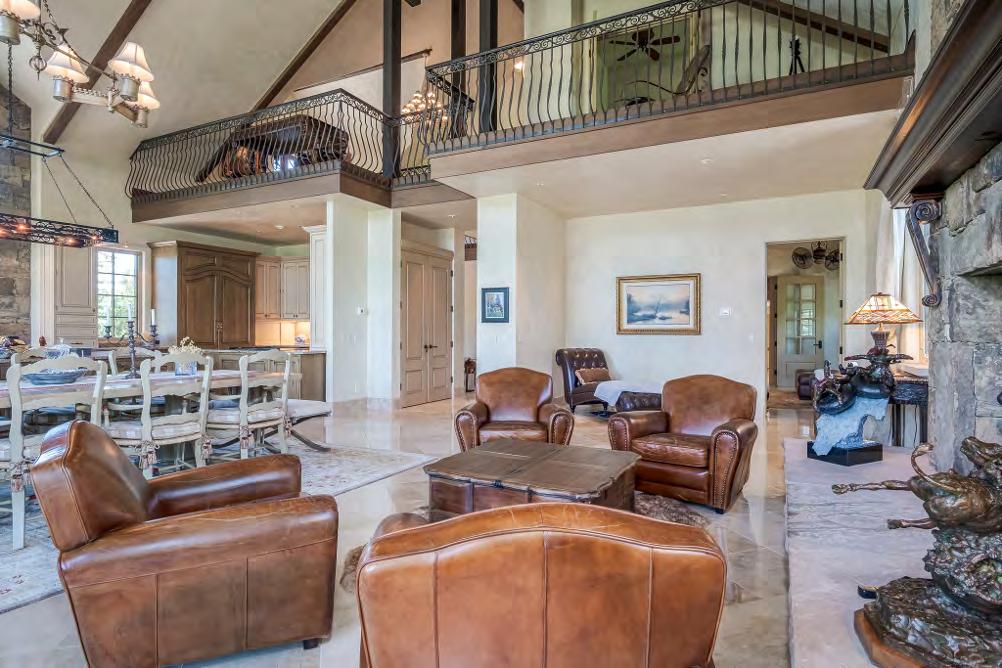 The great room is truly grand with theliving room,dining and kitchen all open with dramatic 23-foot vaulted ceilings and a wall of windows.