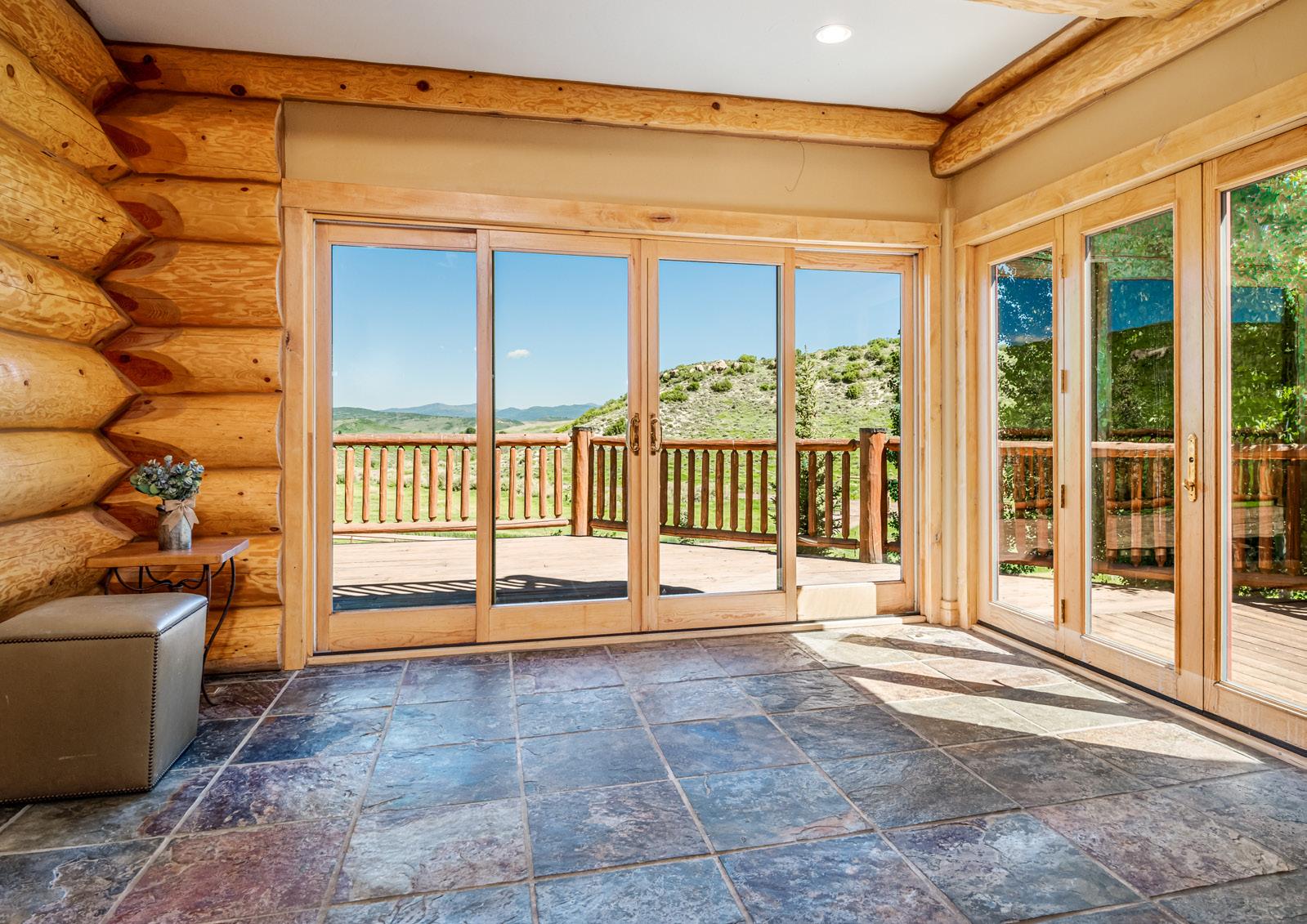 Step out onto the spacious, wrap-around deck overlooking the 7.65-acre parcel and the panoramic views of our valley.