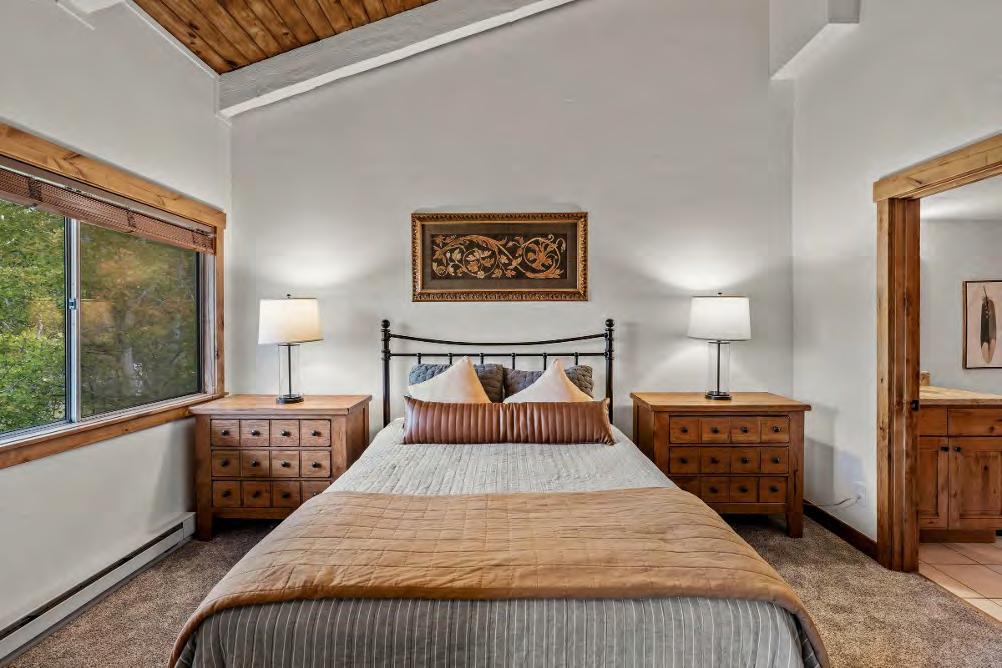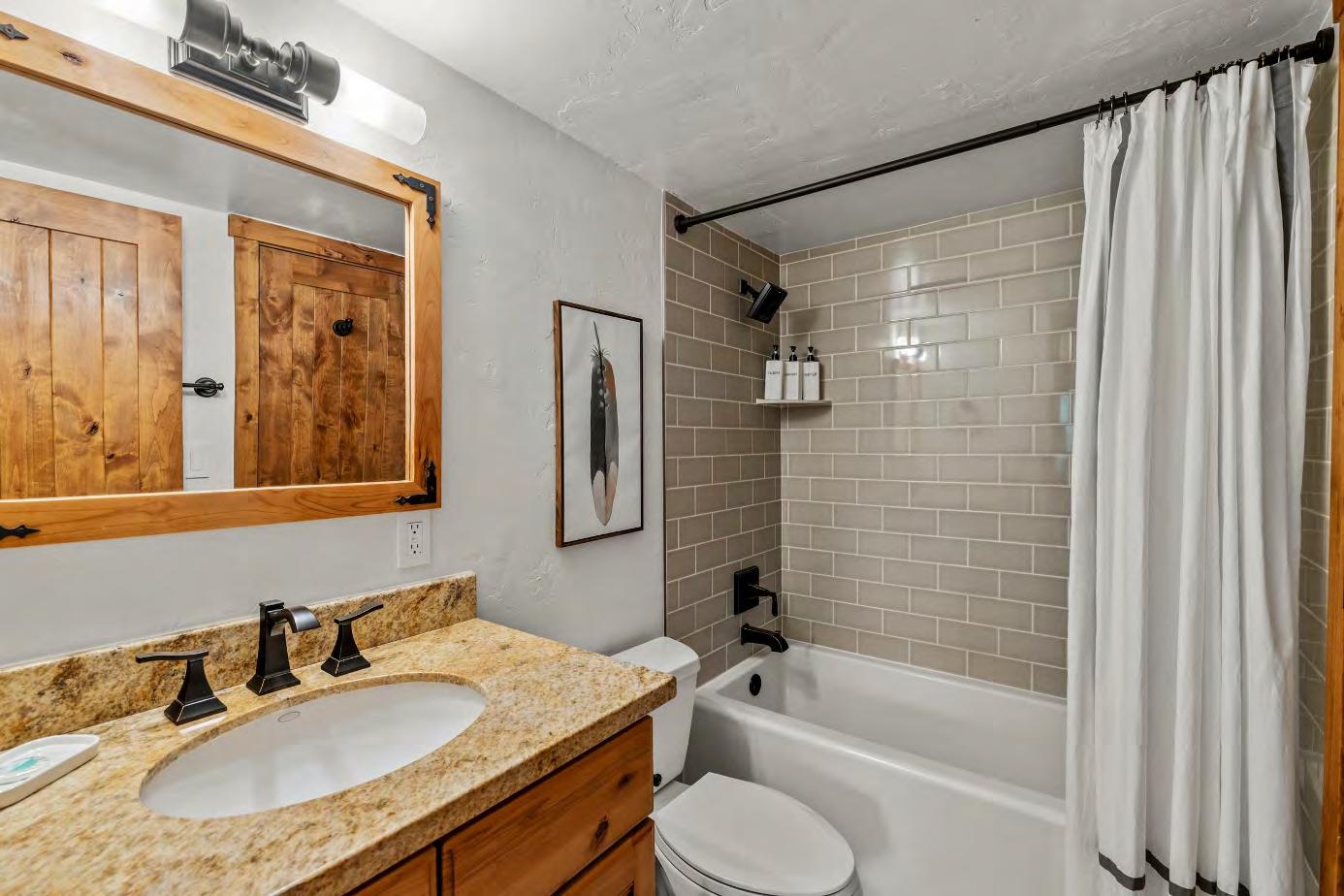 Upstairs,you?ll find aprivate bedroom retreat completewith its own full bathroom,soaring vaulted ceilings,and charming skylight windows that flood theroom with natural light.Barn door closets add atouch of rustic chic,whilethe adjacent loft spacecan serve as an additional sleeping area or office/den room.
