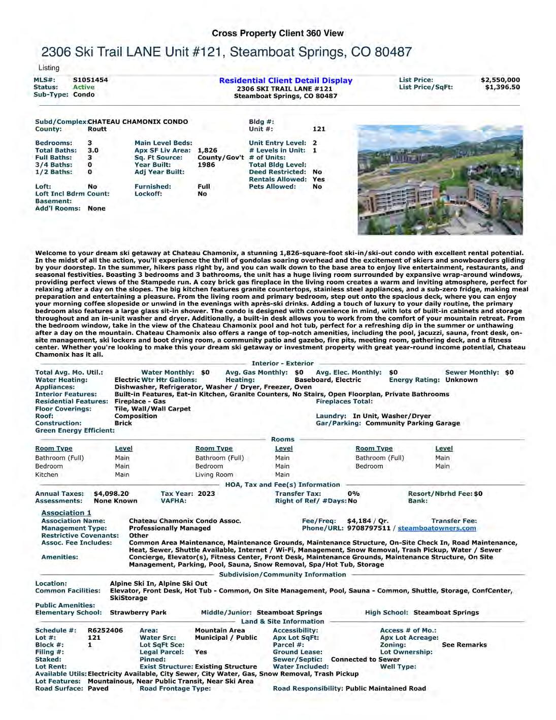 Welcome to your dream ski getaway at Chateau Chamonix,a stunning 1,826-square-foot ski-in/ski-out condo with excellent rental potential.In the midst of all the action,you'll experiencethe thrill of gondolas soaring overhead and theexcitement of skiers and snowboarders gliding by your doorstep.In the summer,hikers pass right by,and you can walk down to thebasearea to enjoy live entertainment,restaurants,and seasonal festivities.