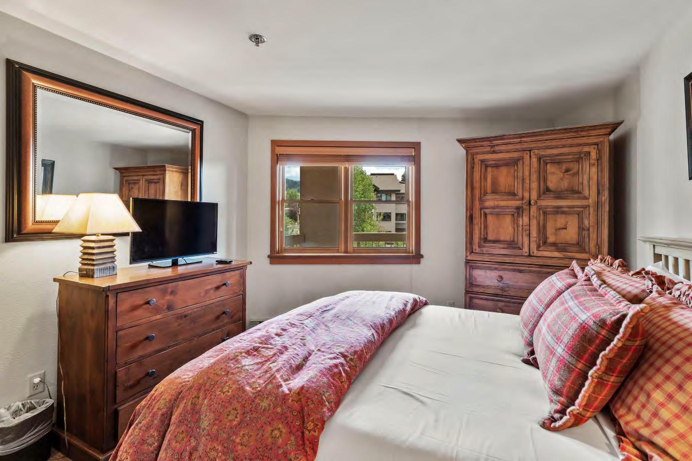 Thecondo is designed with conveniencein mind,with lots of built-in cabinets and storage throughout and an in-unit washer and dryer. Additionally,abuilt-in desk allows you to work from thecomfort of your mountain retreat.