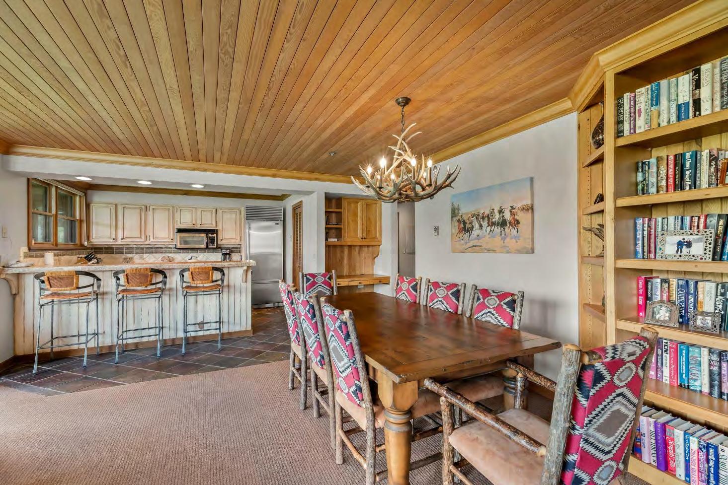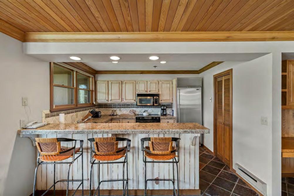 Thebig kitchen features granitecountertops,stainless steel appliances,and asub-zero fridge,making meal preparation and entertaining a pleasure.From theliving room and primary bedroom, step out onto thespacious deck,whereyou can enjoy your morning coffeeslopeside or unwind in the evenings with après-ski drinks.