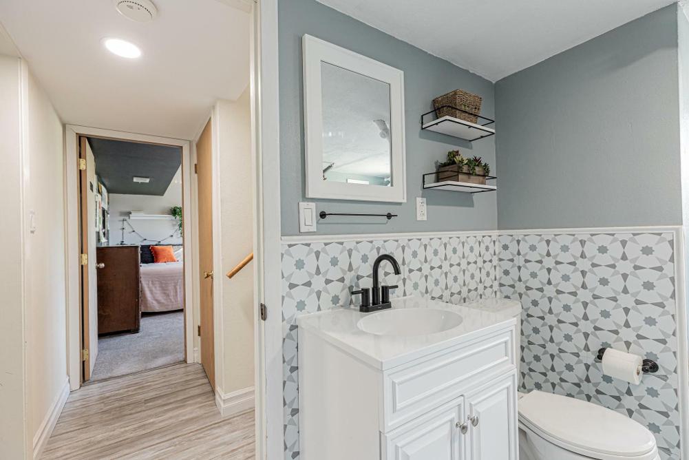 Theopen floor plan creates aseamless flow throughout the home Themain level offers threebedrooms,including the primary suite On thelower level,you can find abedroom that could be transitioned to an officeor den,alongsidea spacious entertainment spacewith amplestorage Alarge laundry room and quarter bath add extraconvenience on the lower level