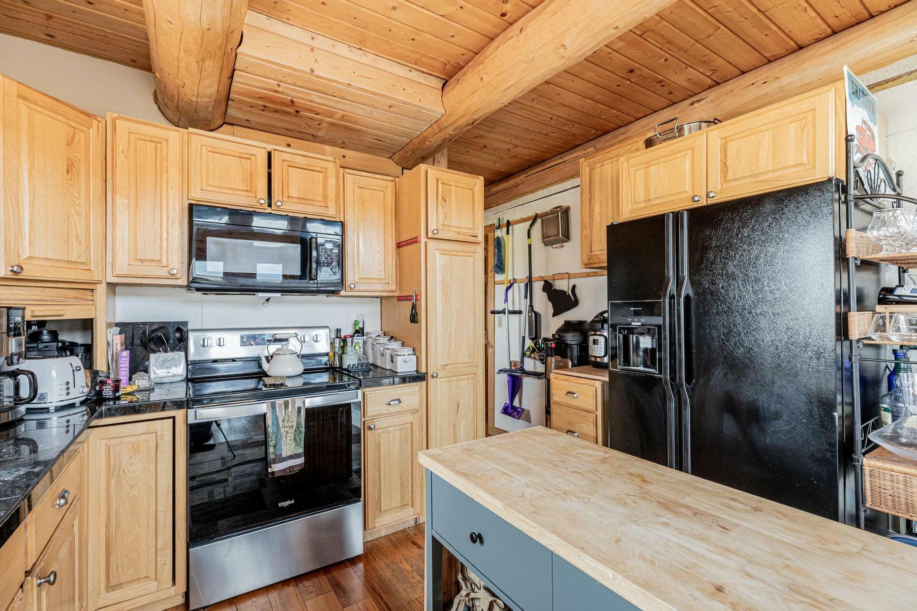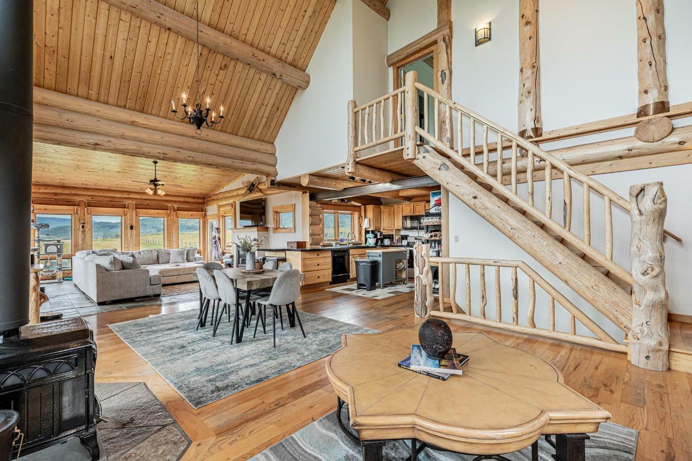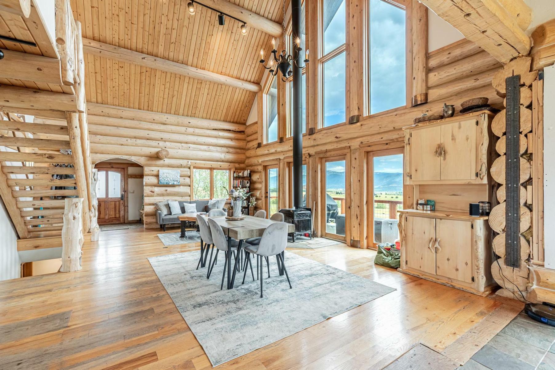 As you step into thebeautiful custom log home,you'll be greeted by thewarmth of its log and beam interior features spanning threefloors Thehouse comprises three bedrooms and threebathrooms and abonus entertainment room.
