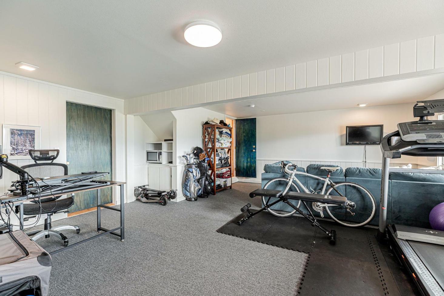 Aspacious apartment is situated above thedetached garageand boasts two bedrooms,a full bathroom,afull kitchen,a washer and dryer,and aliving area,making it a delightful home away from home Below the apartment is a well-equipped workshop and 4-car garage,perfect for any hobby or project and amplespacefor thelargest vehicles.