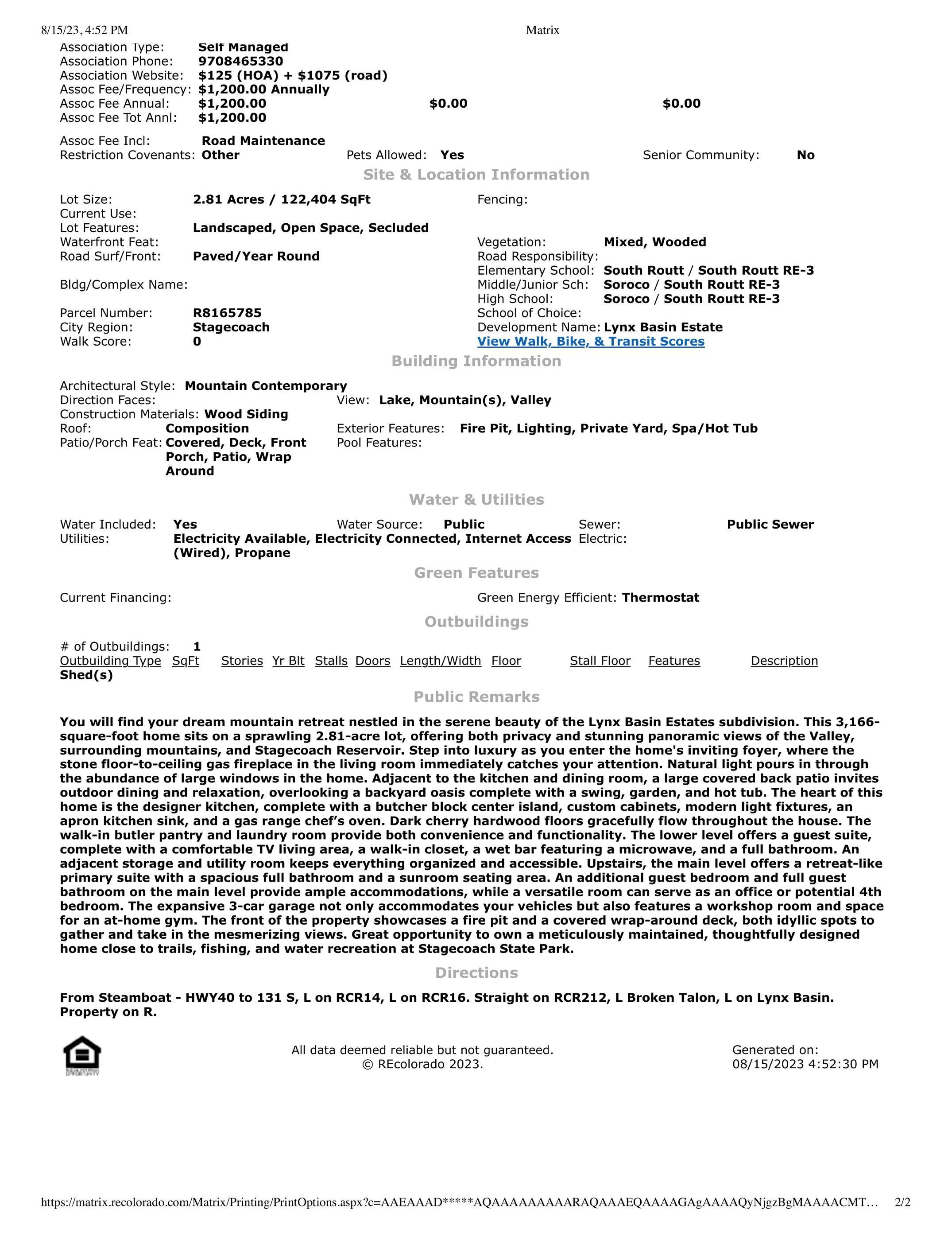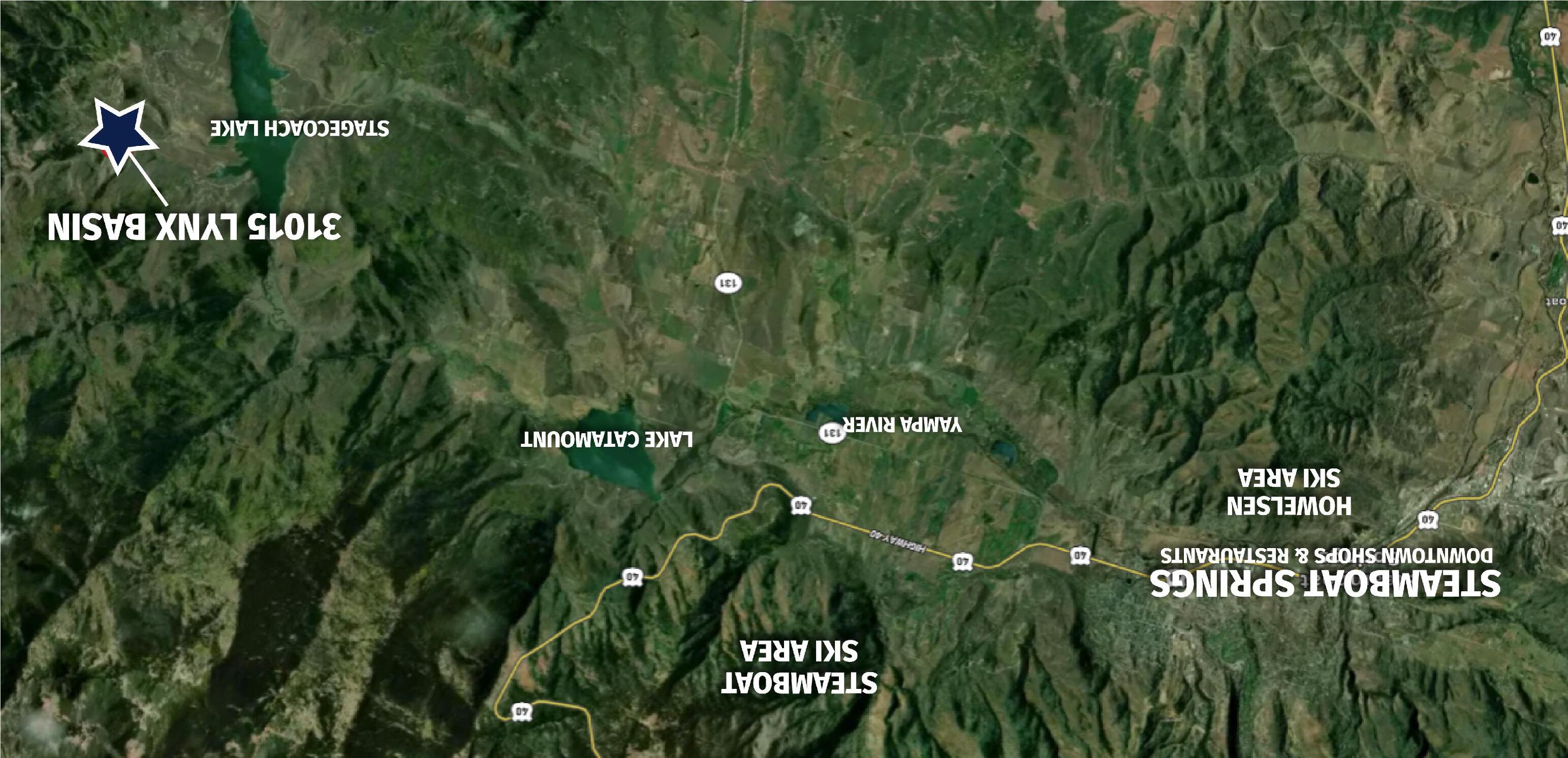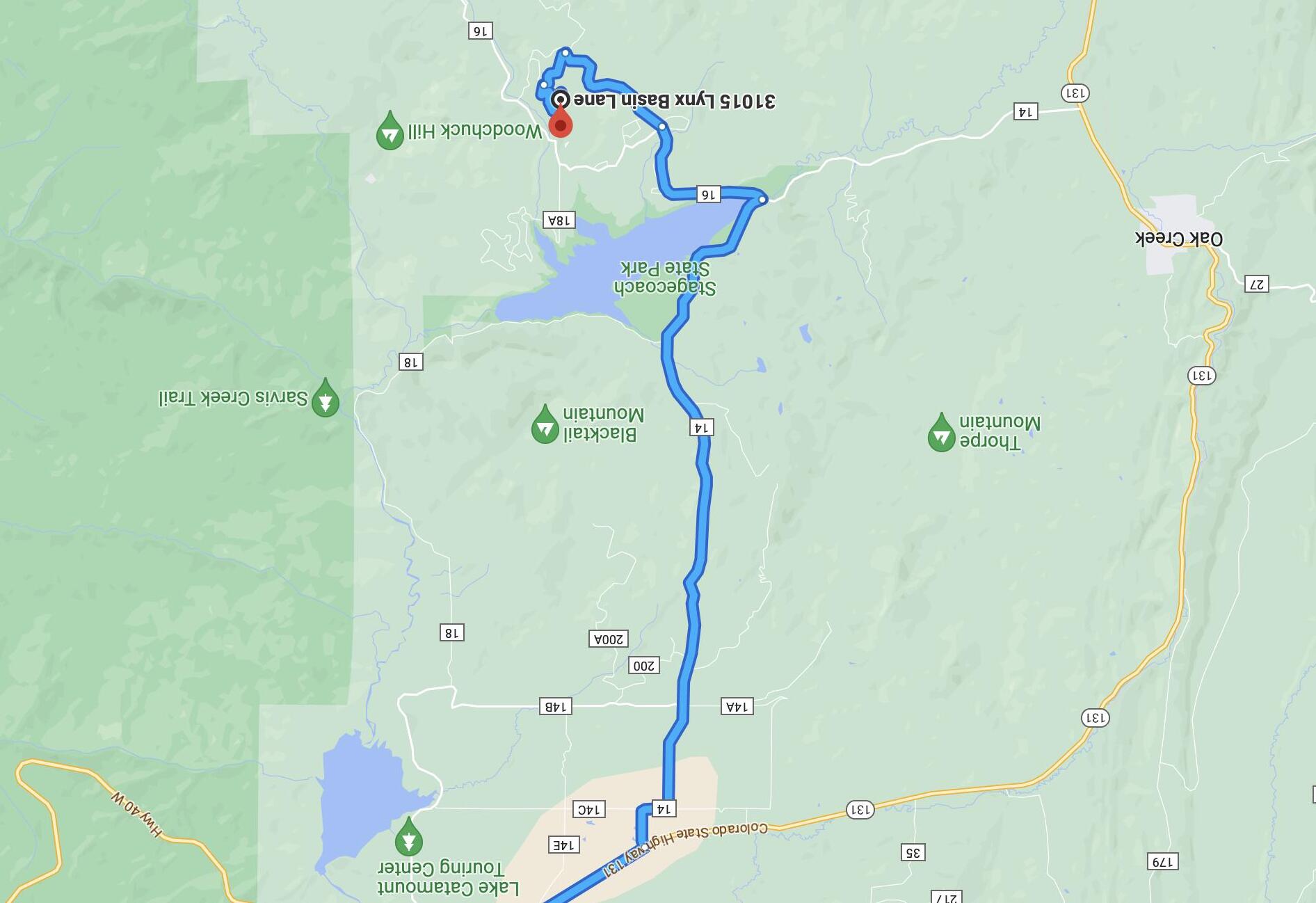 From Steamboat - HWY40 to 131S,Lon RCR14,Lon RCR16.Straight on RCR212,LBroken Talon,Lon Lynx Basin.Property on R.
