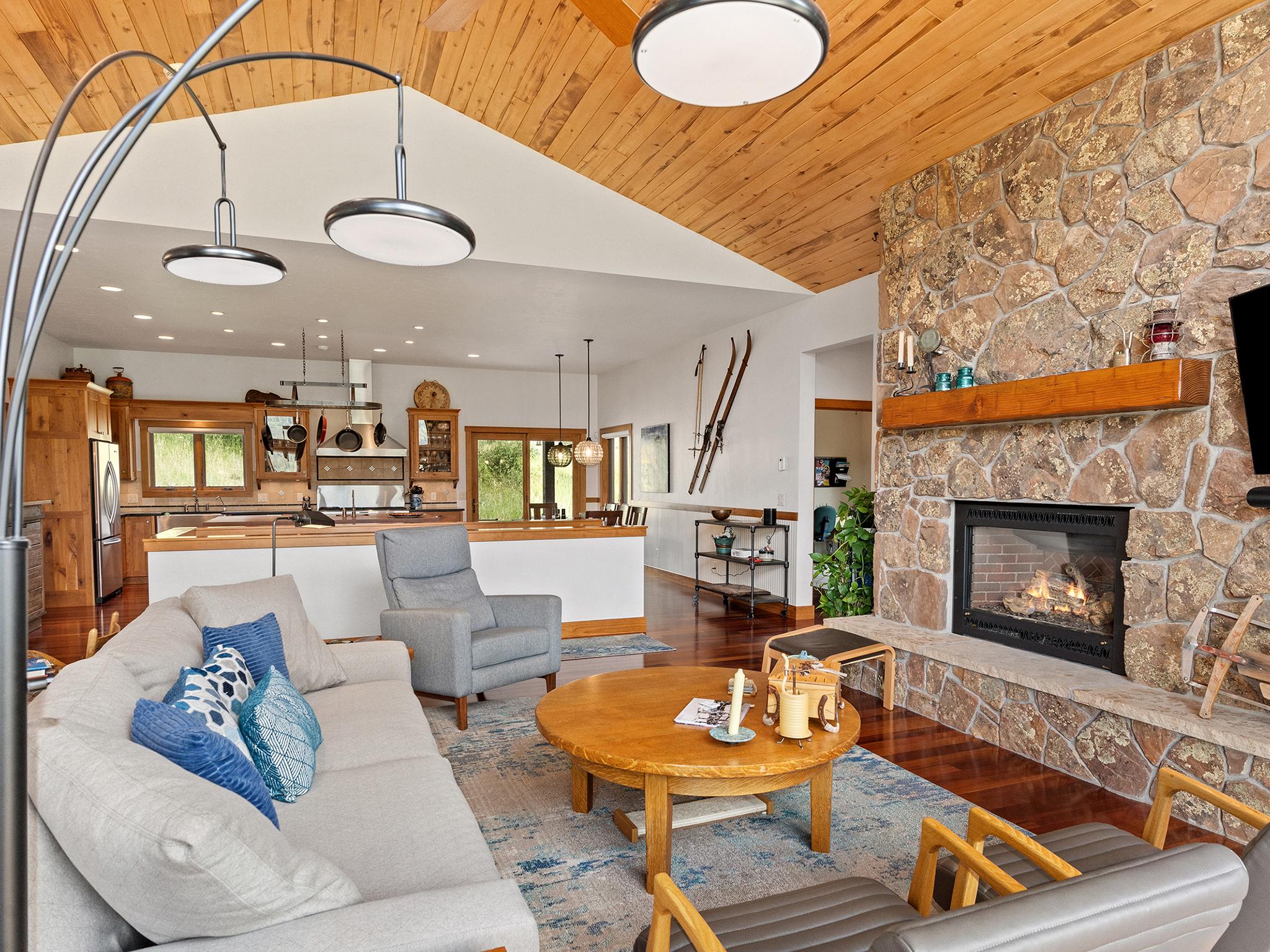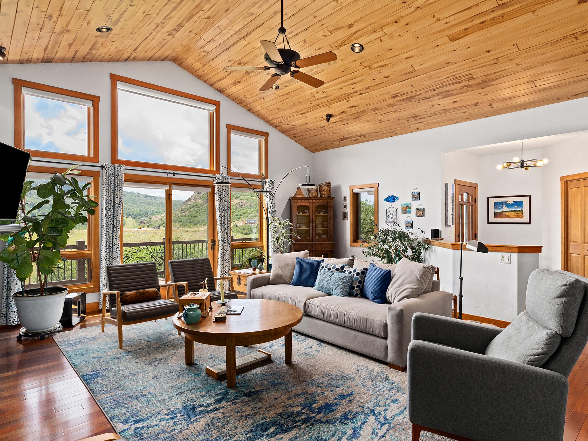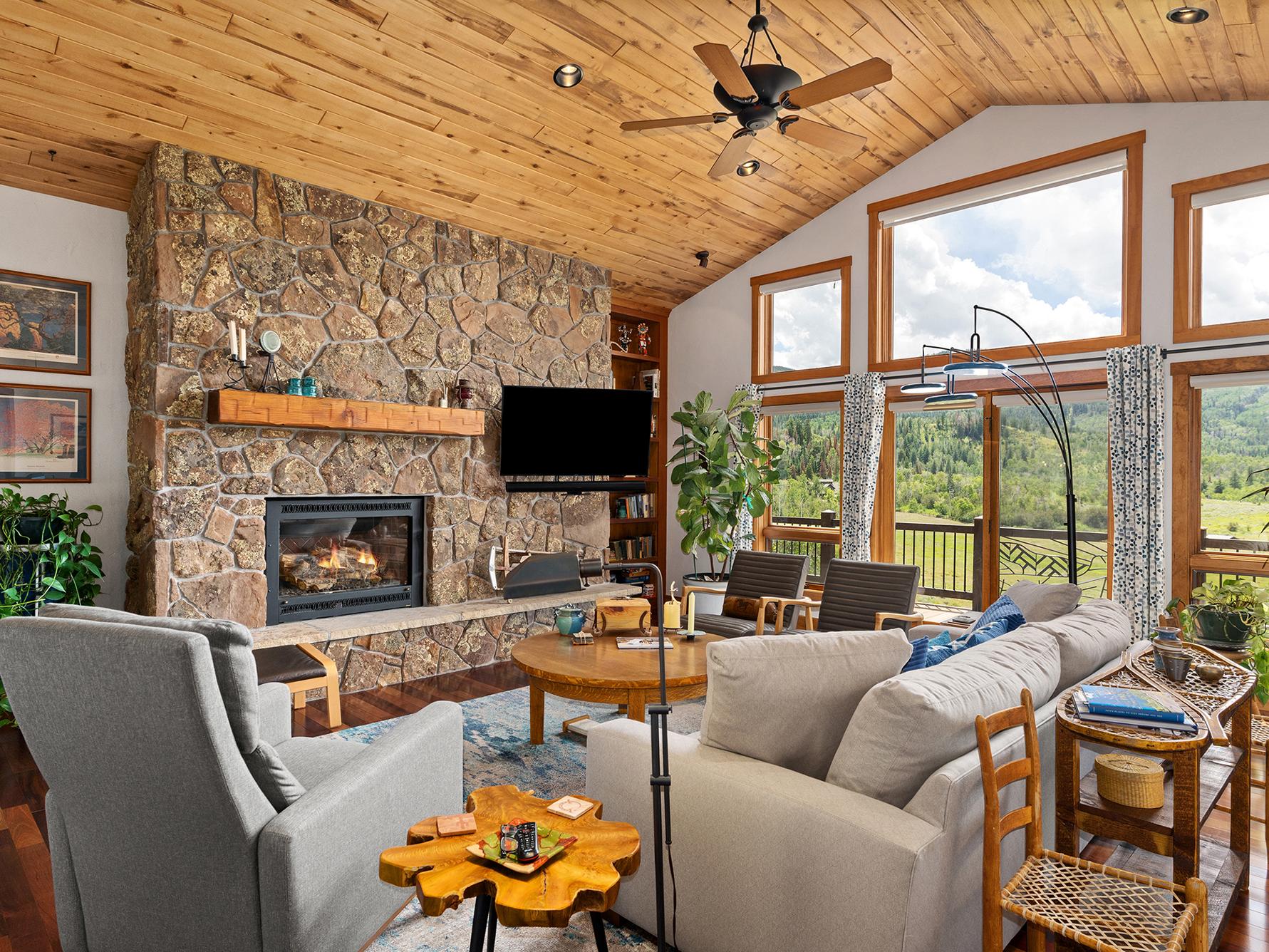This 3,166-square-foot home sits on asprawling 2.81-acre lot,offering both privacy and stunning panoramic views of the Valley,surrounding mountains,and Stagecoach Reservoir Step into luxury as you enter thehome's inviting foyer,wherethe stonefloor-to-ceiling gas fireplacein the living room immediately catches your attention Natural light pours in through the abundanceof large windows in the home