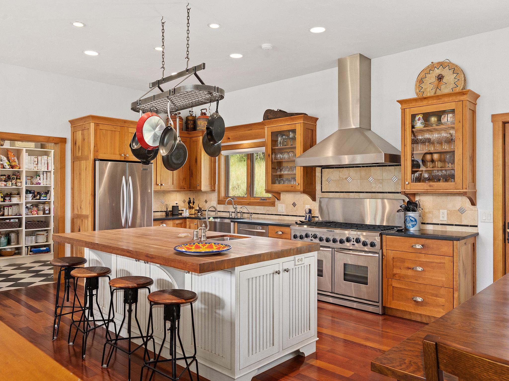 Adjacent to the kitchen and dining room,a large covered back patio invites outdoor dining and relaxation, overlooking abackyard oasis complete with aswing, garden,and hot tub Theheart of this home is thedesigner kitchen,complete with abutcher block center island, custom cabinets,modern light fixtures,an apron kitchen sink,and a gas rangechef?s oven.Dark cherry hardwood floors gracefully flow throughout thehouse.Thewalk-in butler pantry and laundry room provideboth convenience and functionality