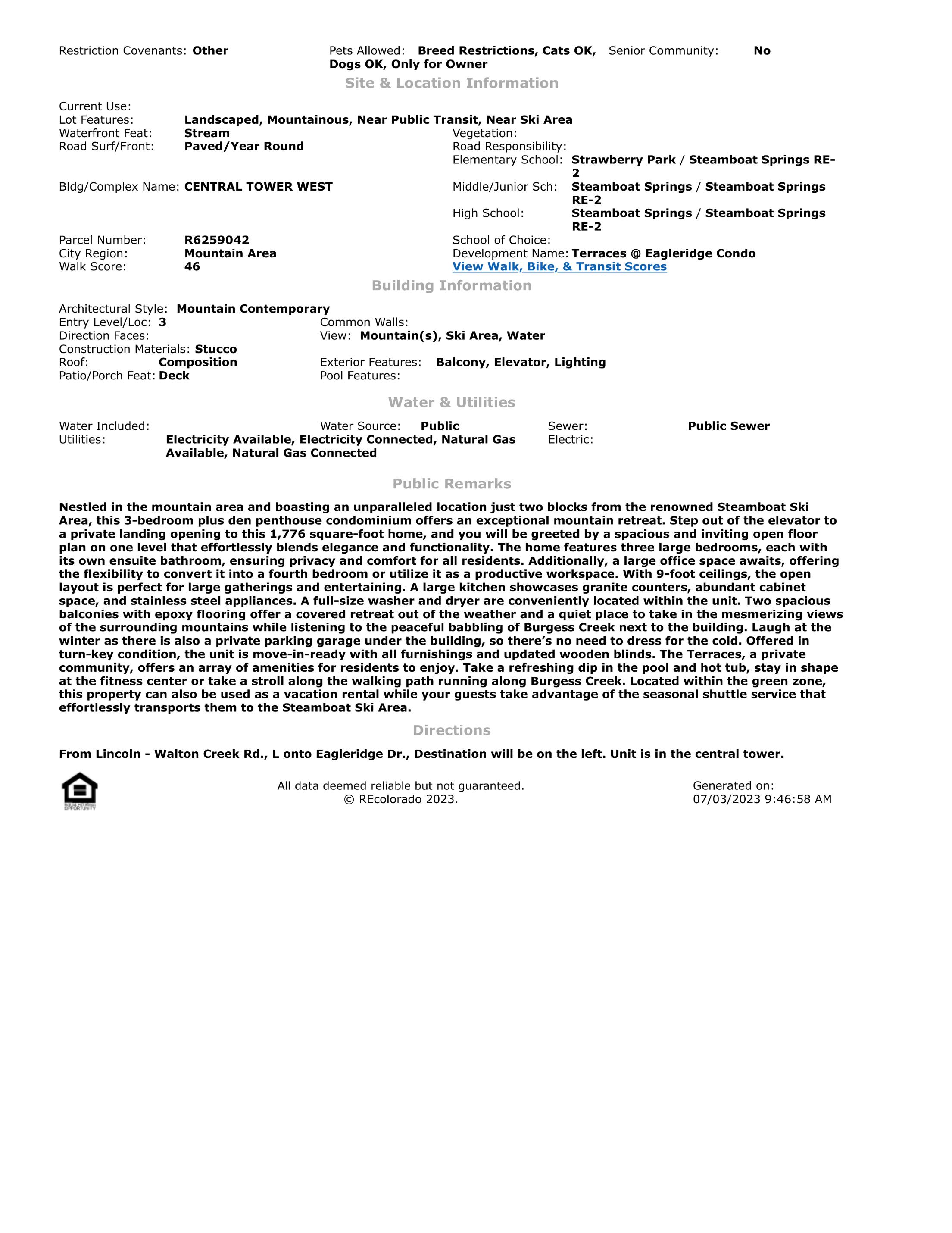 Just two blocks from therenowned Steamboat Ski Area, this 3-bedroom plus den penthousecondominium offers an exceptional mountain retreat Step out of the elevator to a privatelanding opening to this 1,776 square-foot home,and you will be greeted by aspacious and inviting open floor plan on one level that effortlessly blends elegance and functionality