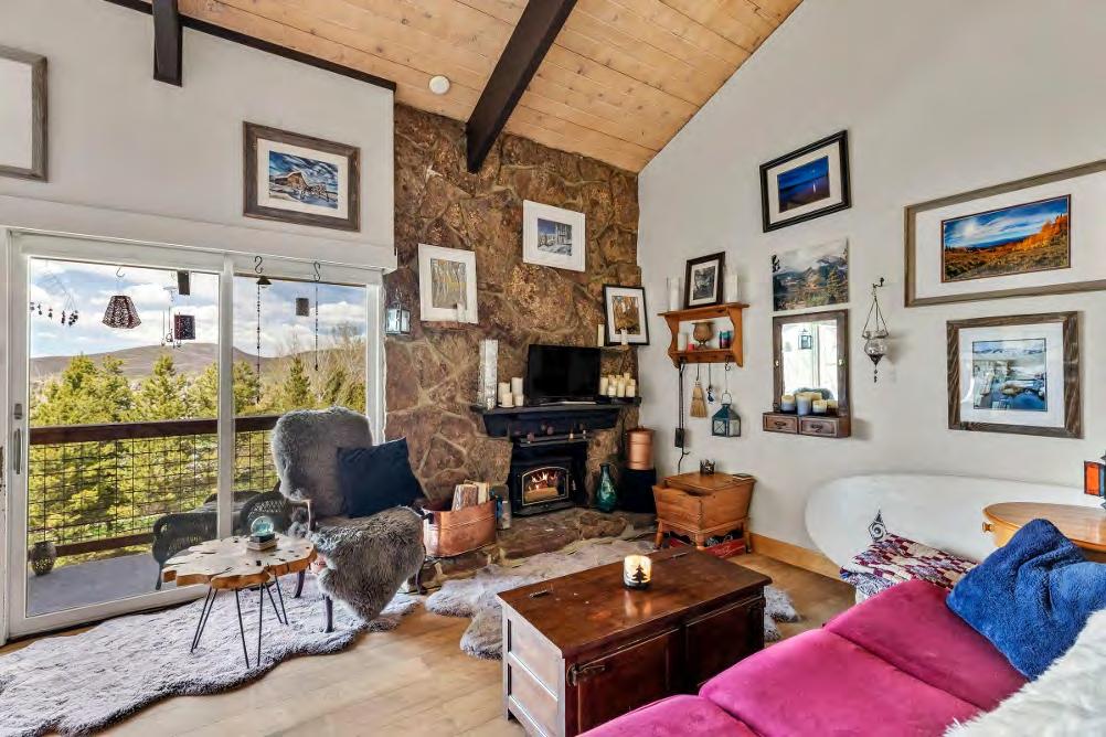 The main level features a stunning two-story living room with tall windows that flood the spacewith natural light and showcase the incredibleviews.The living area also offers a two-story stone wood-burning fireplace,perfect for cozy evenings.
