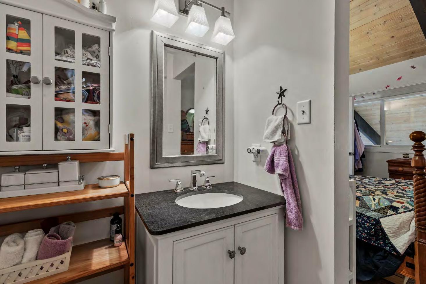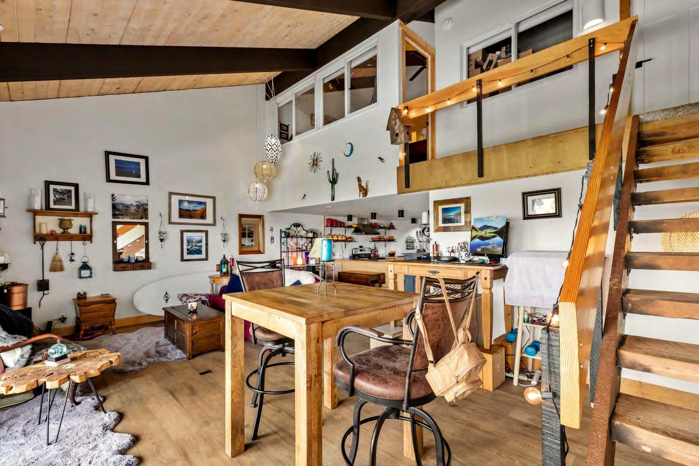 The updated kitchen has amplecounter space,ideal for gathering friends and family over gourmet meals or casual snacks.Afull bathroom and aconvenient laundry room completethe main level.Upstairs,discover two spacious bedrooms with vaulted ceilings.