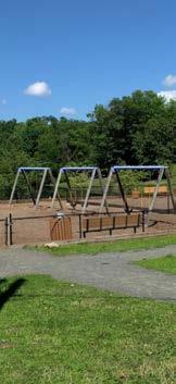 Beautiful park with lush, grassy areas, novel play equipment, trails, pond, picnic tables and stargazing platform