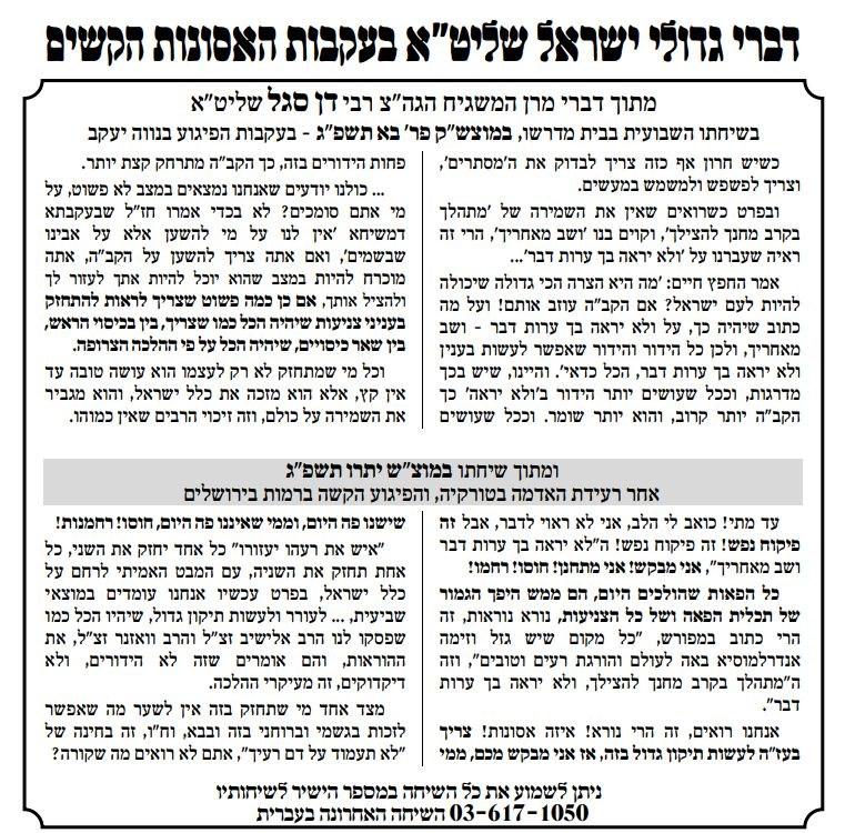 רעד ןופ ןטעטיוויטקא עגיטעטליואוו יד ןשיווצ טוט ,ראי ןצנאג םעד סיואכרוד עיצאזינאגרא עיבשמ רעוויסאמ ןוא רעלעיצעפס רעד ןצראטשצסיורא םעד ןרעוו טריפעגכרוד ד”סב טעוו סאוו הקולח ןסע תוחפשמ רעטנזיוט ןעוו ,םירופה םוי ןדנעייטשראפעב ריט םייב ןעמוקאב ירפרעדניא םירופ ןלעוו תוכרצנ םעד ןיא רעגנוה םעד ןליטש וצ ךיז גראוונסע לקעפ א .יעבדכ ט”וי תחמש א ןופ ןסינעג ןענעק וצ גאט ןסיורג ,שיגדמ זיא רעכלעוו ם”במר ןגילייה םענופ לודג ונל ימ ןוא תודועס ןעווארפ רימ ןעוו םירופ ט”וי םעניא זא זנוא ףיוא טגיל ,החמשו התשמ טימ הברמ ןענעז רימ זיולב טימ ןגונגאב טשינ ךיז ןלאז רימ זא טכילפ א ןכאמ רעכיז ןלאז רימ ראנ ,הוצמ לש החמש רעזנוא רעד יוו ןוא ,ערעדנא ןייז הנהמ ןוא ןעיירפרעד וצ םינויבא תונתמב תוברהל םדאל בטומ :טביירש ם”במר םש ןיאש ,ויערל תונמ חולשבו ותדועסב תוברהלמ םימותיו םיינע בל חמשל אלא הראופמו הלודג החמש המוד ולאה םיללמאה בל חמשמהש ,םירגו תונמלאו .”הניכשל