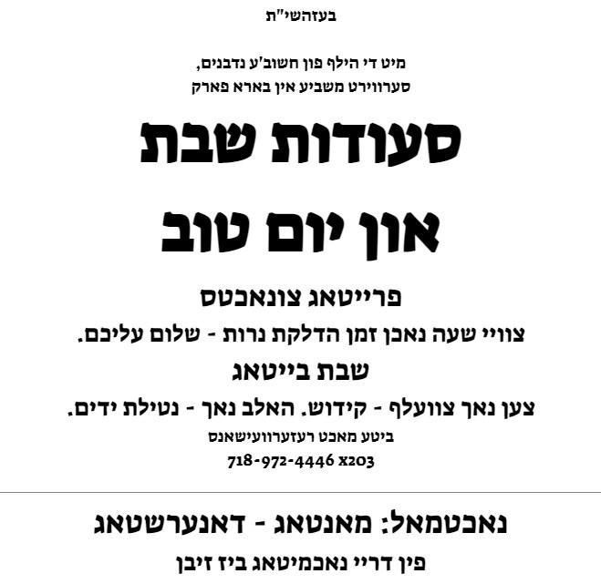 718-2-LERNER (253-7637) :רמוא אוה המ םכח תואצוה אד זיא געט חספ ברע ענעמונראפ יד ןיא ןעלדנאהנייא טשינ רימ ךיא לאז סאווראפ ,פאק ןרעביא חספ ףיוא למיירטש 'ראה עגנאל' עכילרעה א ?טמיוצעג יוזא טשינכאנ זיא שאט יד ןעוו HOURS: Sunday through Thursday 2:00 till 8:30 ד"סב ליעסוֹשׁאֹרְבּ