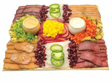 Smoked Turkey drum variety of beef and turkey cold cuts, topped with a smoked turkey drum stick. $65.00 Pickled beef platter Variety of pickled beef 12" $120.00 14" $145.00 16" $175.00 Platter Variety of beef pastrami, salami, hard salami & turkey cold cuts. 14" $85.00 16" $95.00 18" $130.00 2 flavors of pickled chicken, plain and smoked chicken pastrami. 14" $95.00 16" $125.00 Deli & Nuggets Platter Variety of beef pastrami, salami, hard salami & turkey cold cuts topped with chicken nuggets. $65 Tongue and Cold Cut Platter Freshly sliced pickled beef tongue and cold cuts served on greenery, sweet sauce optional 14" $140.00 16" $190.00 Charcuterie Platter Variety of tongue, beef jerky, homemade cured & smoked meats, $150.00 Charcuterie Board Variety of 3 kinds beef jerky, homemade cured & smoked meats, dry salami. Hasselback salami dipping sauce Medium $175.00 Large $295.00 Deli Sandwich Platter Hero club bread stuffed with all kind of cold cuts, served with coleslaw, sour pickles, and dressing Medium $95.00 Large $120.00 Deli Wrap Platter Fresh wraps stuffed with cold cuts served with coleslaw, sour pickles and dressing Small $60.00 Medium $85.00 Large $110.00 Platter Fresh mini roll stuffed with freshly sliced deli, and lettuce. $3.00 each min 24 pc Gourmet Meat Platter Variety of pastrami, corned beef, homemade brisket, roast beef, London broil 14" $170.00 16" $230.00