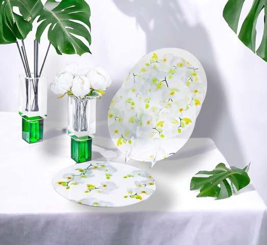 4 Exquisite Clear Acrylic Painted Chargers, Paired up with Elegant Pastel 9" Crystal Vase and 9" Tall Diffuser Set To Ensue the Soft Coloring and Give your Tablesetting a Remarkable Makeover. Gift is Beautifully Wrapped on a Tray, Will Include 2 Food Items תונמ חולשמ Worthy.