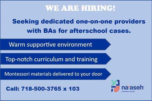 Staff positions available // 347-216-0536 // t.ungar@hcsny.org
