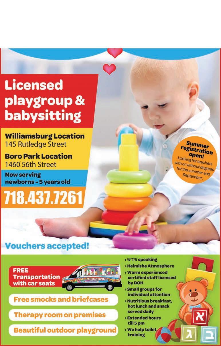 You Can Transform Lives! WE ARE HIRING Due to expansion, we have the following open positions: Physical Therapist Speech Therapist Occupational Therapist Social Worker for the 2024-2025 school year Apply now: 718.303.9170 info@chayeinuacademy.org ד”סב Come work with us. Braverhood provides services through OPWDD and DOH to children and adults with disabilities. We are looking to hire coordinators to work with families and help them get the services they need. Email resume: resumes@braverhood.org Call: 718.336.6073 1527 60th Street / Brooklyn • Full-time positions for our BP location • Competitive pay and benefits • Excellent work environment • Productive and fulfilling Work 223 www.thebpview.com 718.408.8770 May 8, 2024 The Boro Park View